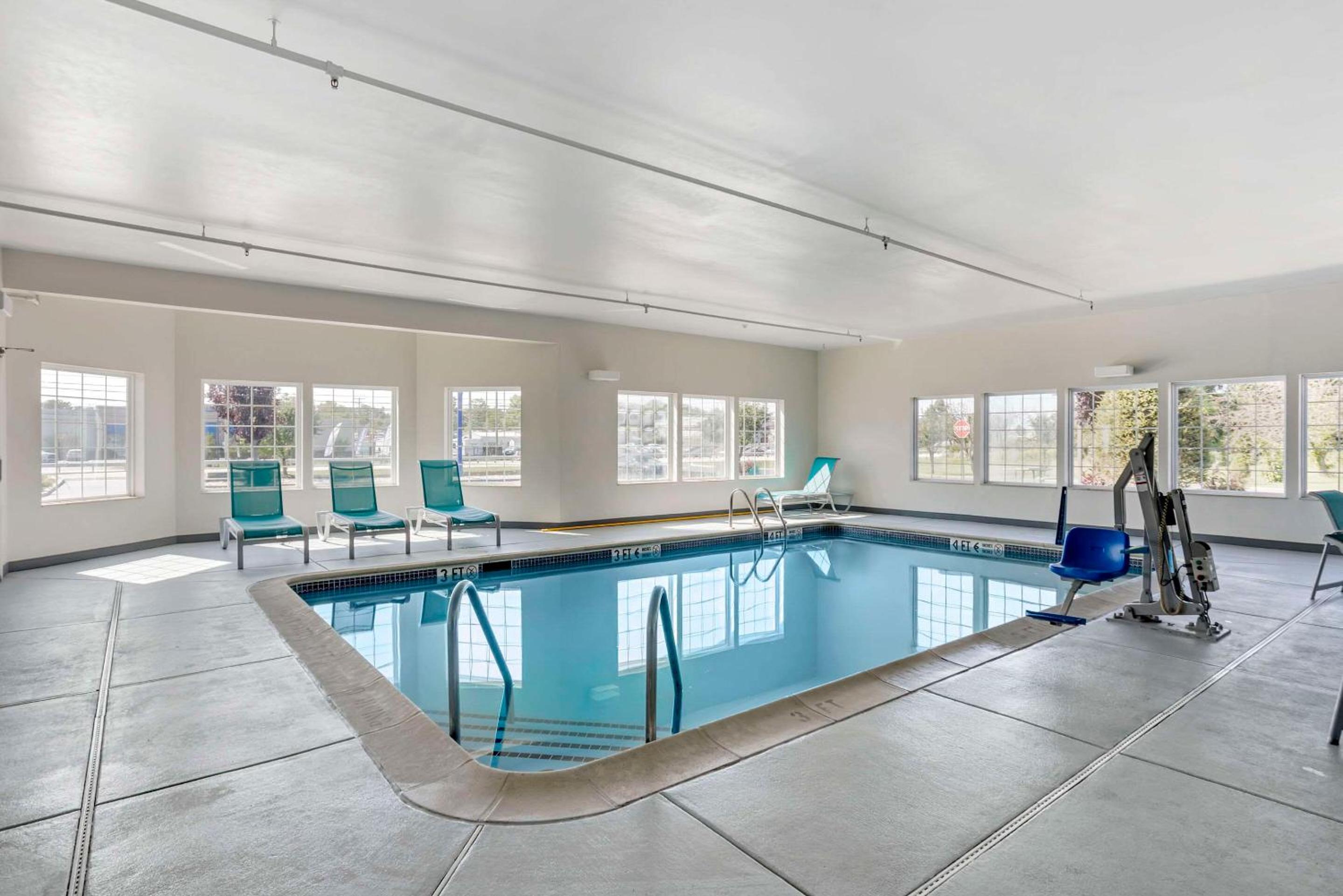 Guests can unwind in the heated indoor pool, stay active in the fitness center, or even do laundry on-site.