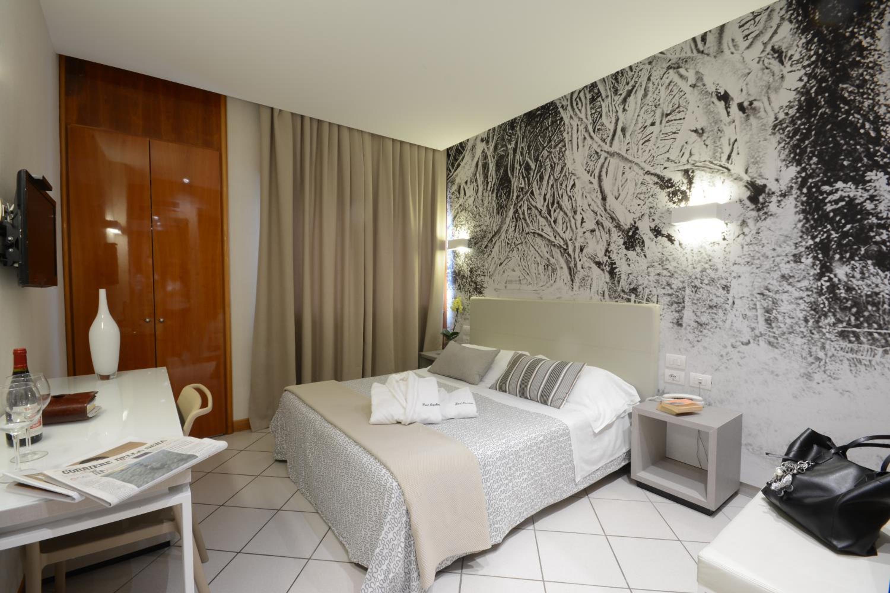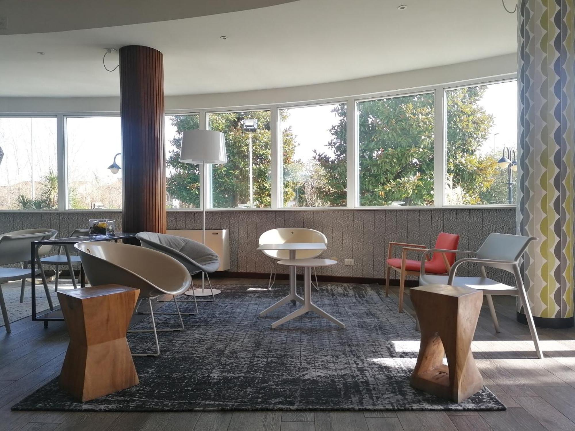 Questo hotel si trova a pochi km dall'uscita dell'autostrada ma pure a stretto giro di bicicletta dalle mura del centro storico di Lucca. Infatti l'hotel mette a disposizione delle bici (anche se un po' datate) e in pochi minuti, tramite un sottopasso, si raggiunge Baluardo Santa Maria, raggiungendo immeditamente la città senza il problema del parcheggio. Pur essendo un business hotel, la nostra camera era di tipo standard matrimoniale, senza balcone (ma questo a noi era irrilevante, eravamo sempre in città!) e dotata di ogni confort: cassaforte, doccia, asciugacapelli, tv, set di cortesia, minibar. La camera è molto pulita, così come il bagno (sebbene cieco), dove ci sono gli asciugamani pulitissimi e il scendidoccia. E' presente il Wi-Fi è funziona egregiamente. Ottima la colazione al buffet, sia dolce che salata, con scelta di yogurt, marmellate, pane, brioche, muesli, succhi. Le bevande calde sono servite dal bar: thè, caffè, cappuccio. Sia il personale alla reception che in sala è molto accogliente e ben preparato.