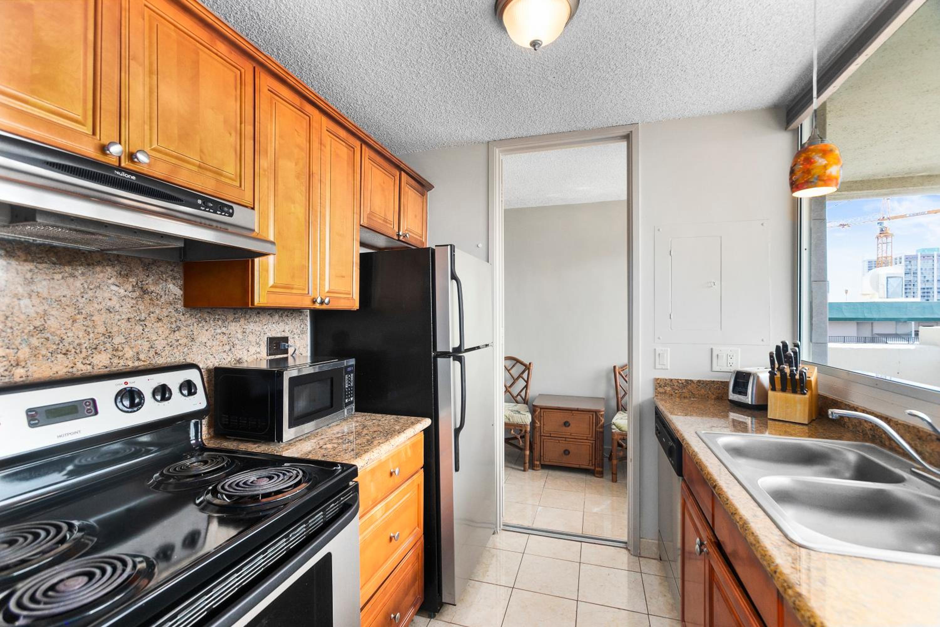 The condo is clean and free of odor. Good water flow through faucets. Appliances are in very good condition.