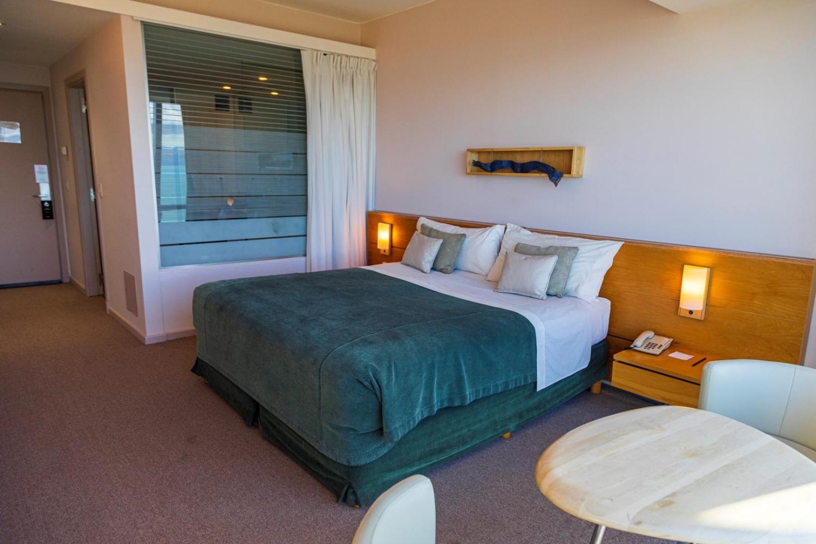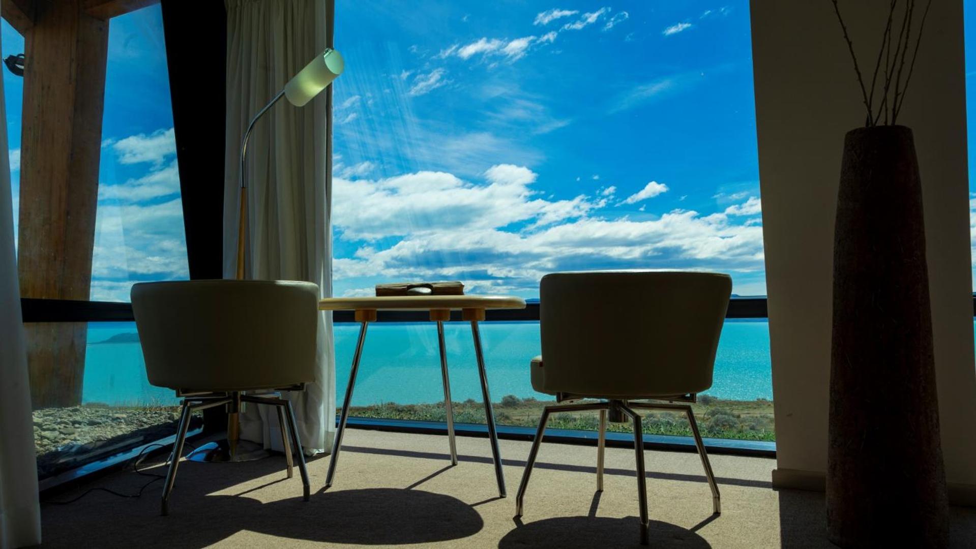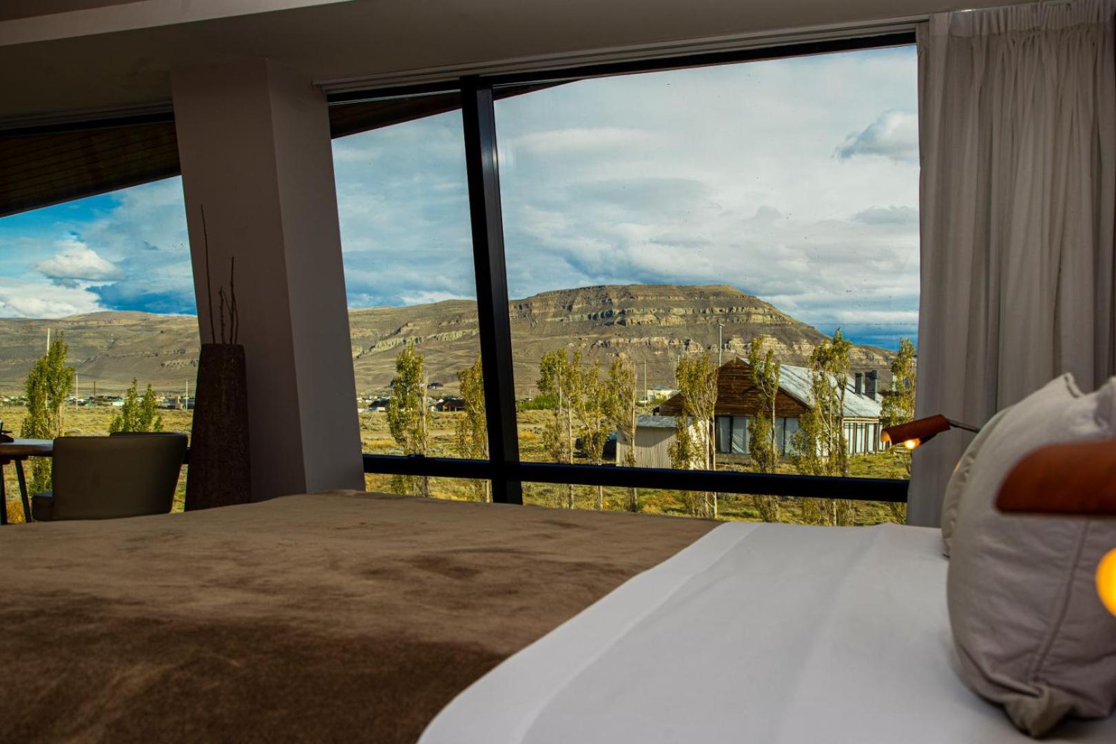 The rooms at Design Calafate are elegantly designed with large windows, allowing natural light to fill the space. Guests can enjoy entertainment on the flat-screen cable TV and some suites even feature spa baths and stunning views of the lake.