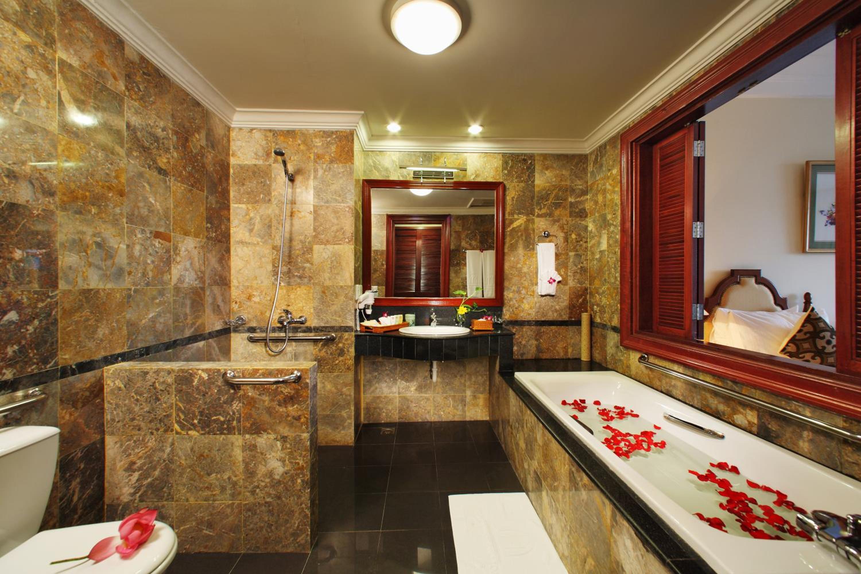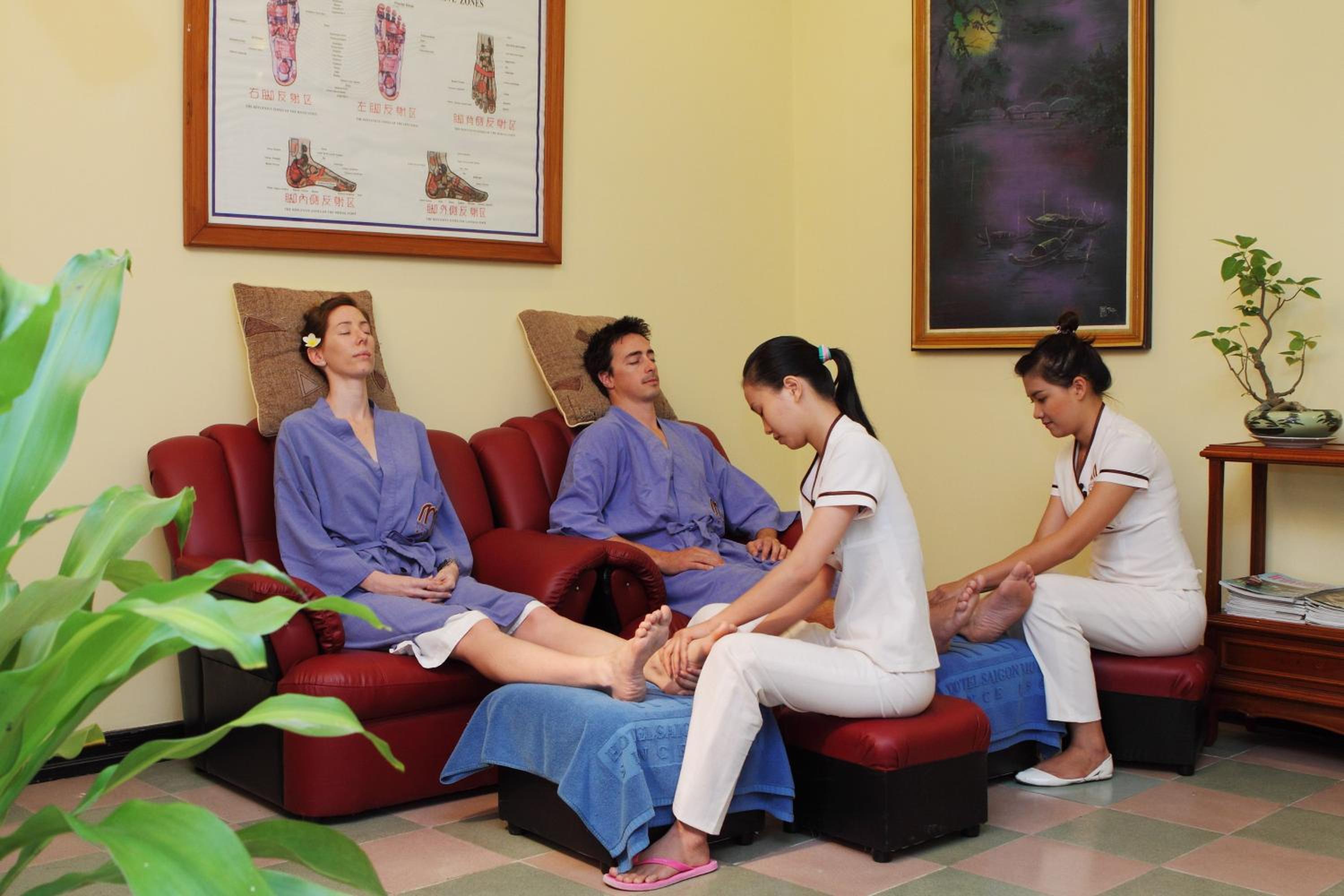 Indulge in a variety of European, Asian, and Hue dishes at the in-house restaurants, complemented by a selection of cocktails, wines, and juices at the bar. For relaxation, guests can unwind at the spa and wellness center, complete with a steam room and hot tub, offering a perfect way to rejuvenate after a day of sightseeing.