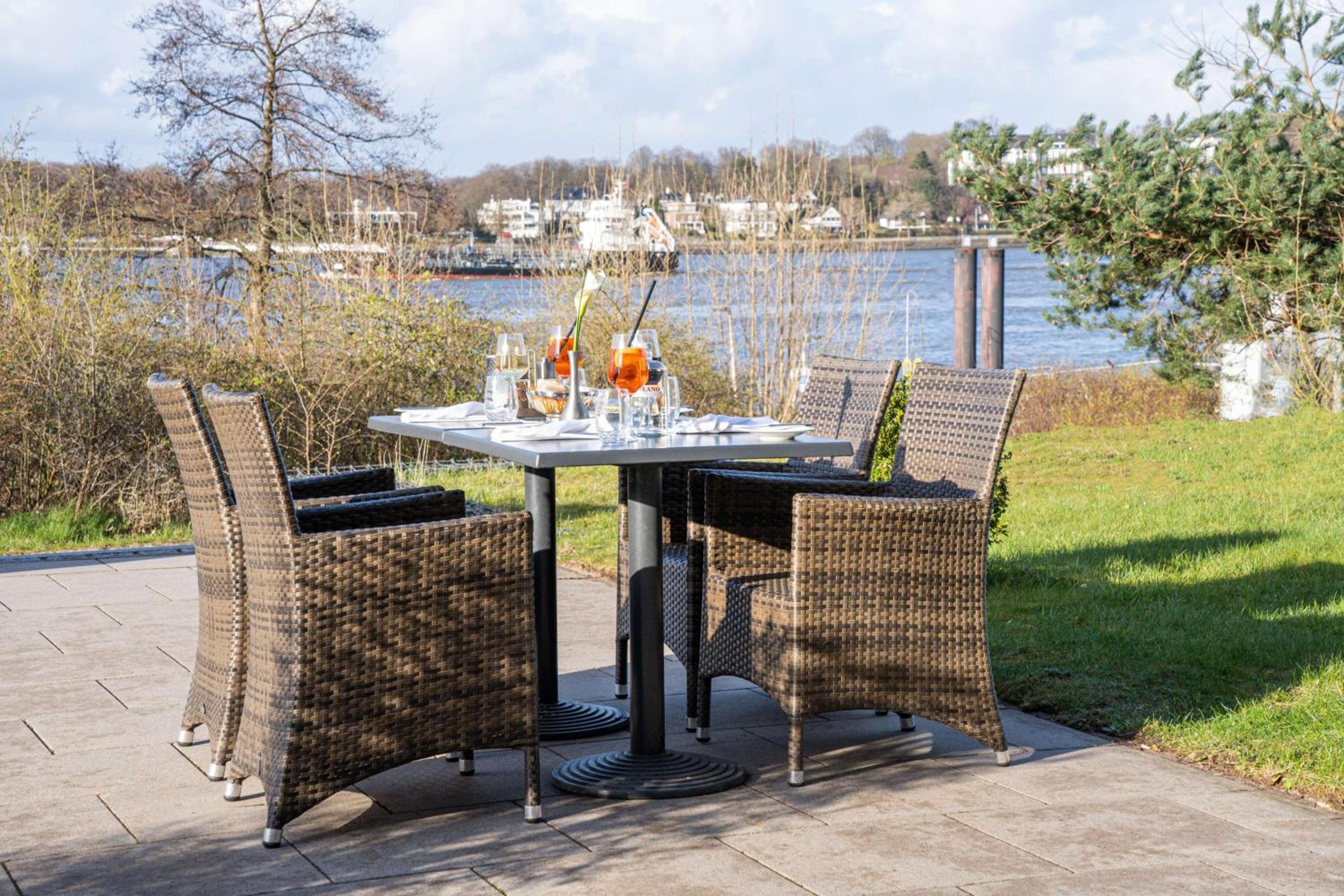 Enjoy stunning views of the River Elbe from our terrace and take advantage of our private pier for a unique experience by the water.