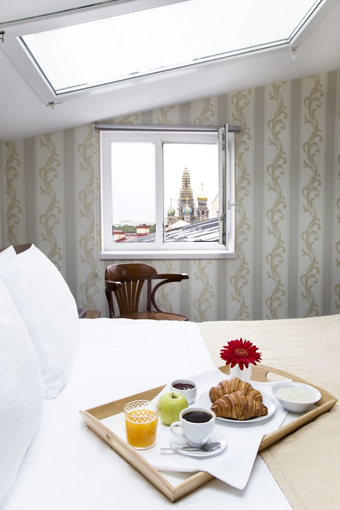 Excellente situation à quelques minutes à pieds de l'Ermitage et de la cathédrale St Sauveur sur le Sang Versé en bordure de canal. Excellent restaurant Géorgien Rustaveli juste à côté pour se repérer car il y a juste une petite plaque indiquant l'hôtel sur le portail. Entrée à chaque fois en sonnant afin que la réceptionniste l'ouvre.