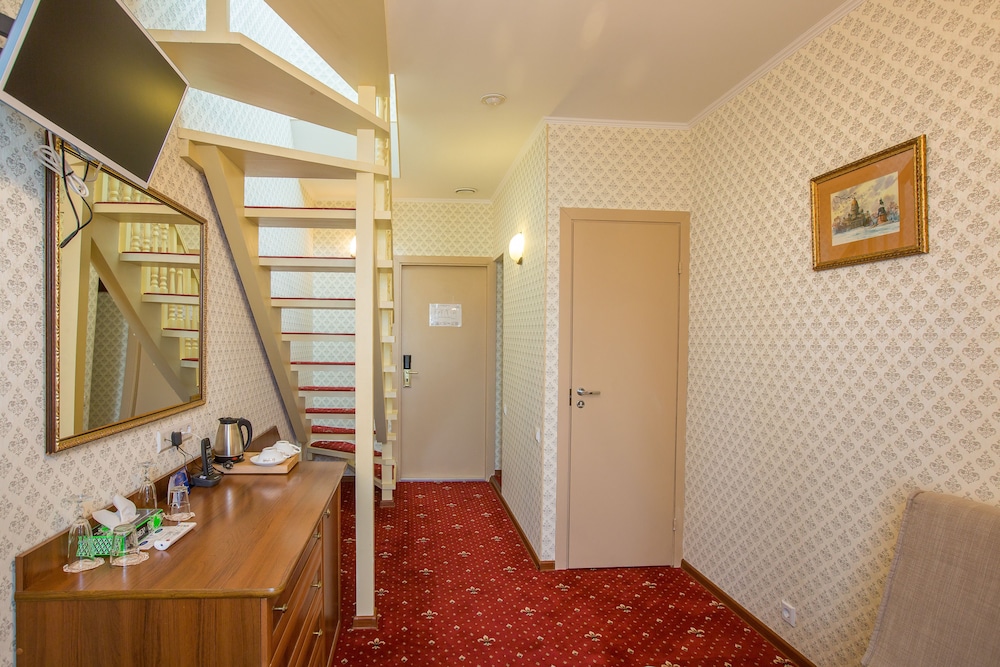 This is a lovely little hotel, perfectly located in a central location along the river. Walking distance to the Hermitage and other sites. It is a clean, well appointed room. The location is a little hard to get used to as it is inside the courtyard, but once you are used to it that only adds to its charm and quiet. It is not air-conditioned and might be hot in the summer, but I was quite comfortable both times I stayed there with the window cracked open.