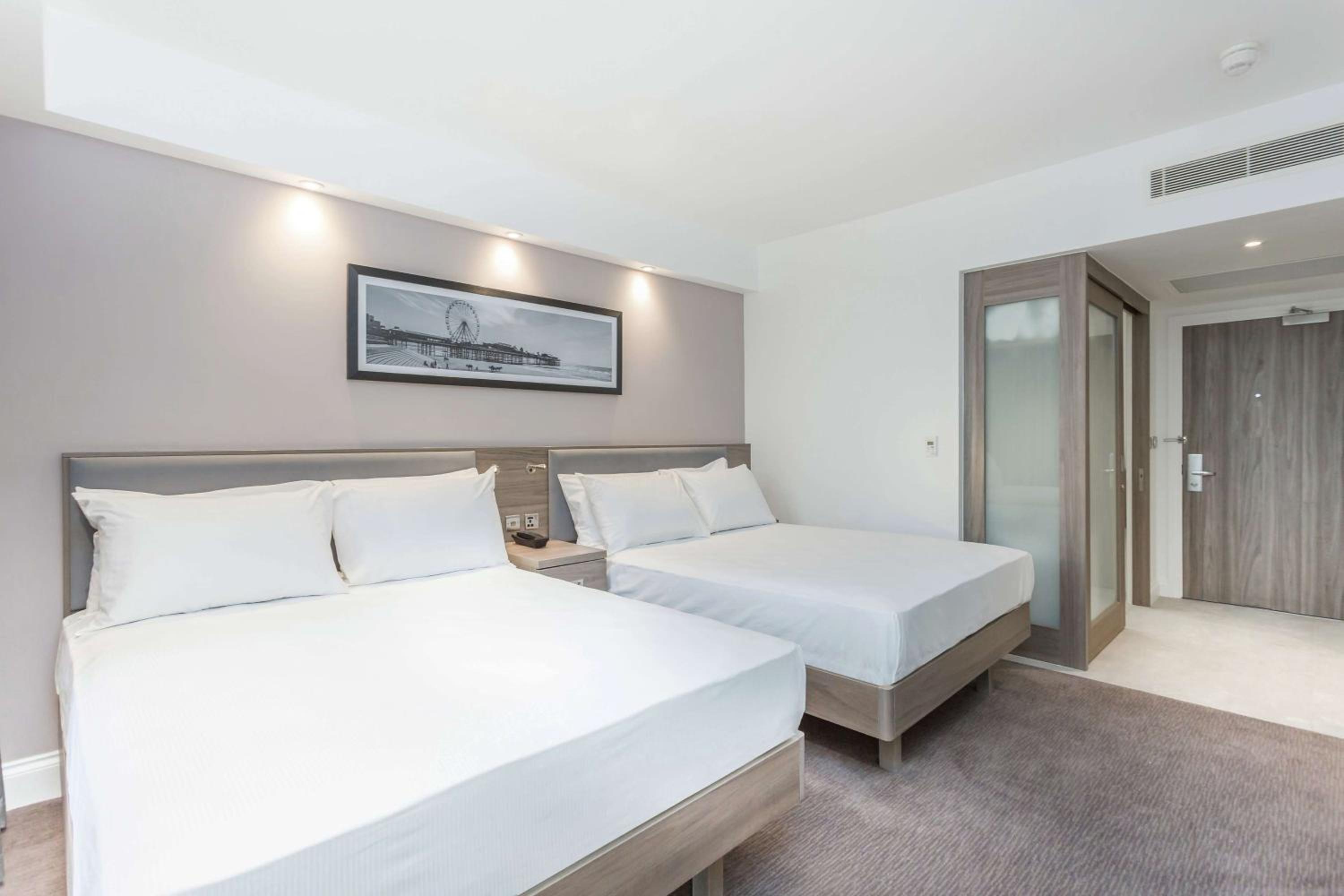 Beachfront Accommodation: Enjoy a stay at Hampton By Hilton Blackpool, just 100 meters from Blackpool Promenade Beach. Relax in air-conditioned rooms with modern amenities including free WiFi, flat-screen TVs, and comfortable bedding.