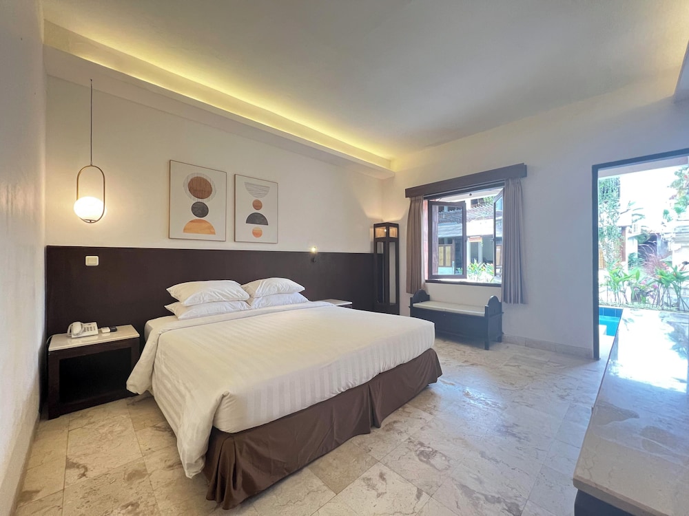 The pool access room was fantastic. The staff very friendly and helpful. The lagoon pool is beautiful and the location very handy to shops and restaurants. As it is far set back from the busy Jl. Legian you don't hear the noise from the street or loud music from nightclubs. Beautiful quiet at night and peaceful.