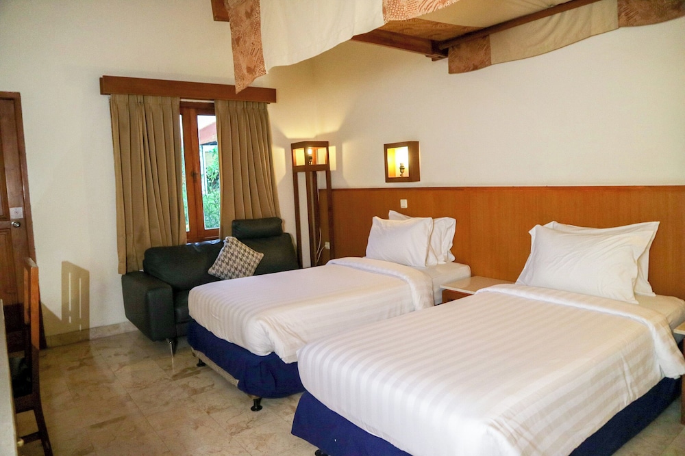 The staff was extremely helpful. We found our original room (Basic) fairly dark (teenagers would love it. ) But no problem to change to another room the de luxe with a four poster bed and balcony for an additional $20 per night. Well worth it. Very nice traditional Balinese resort.
