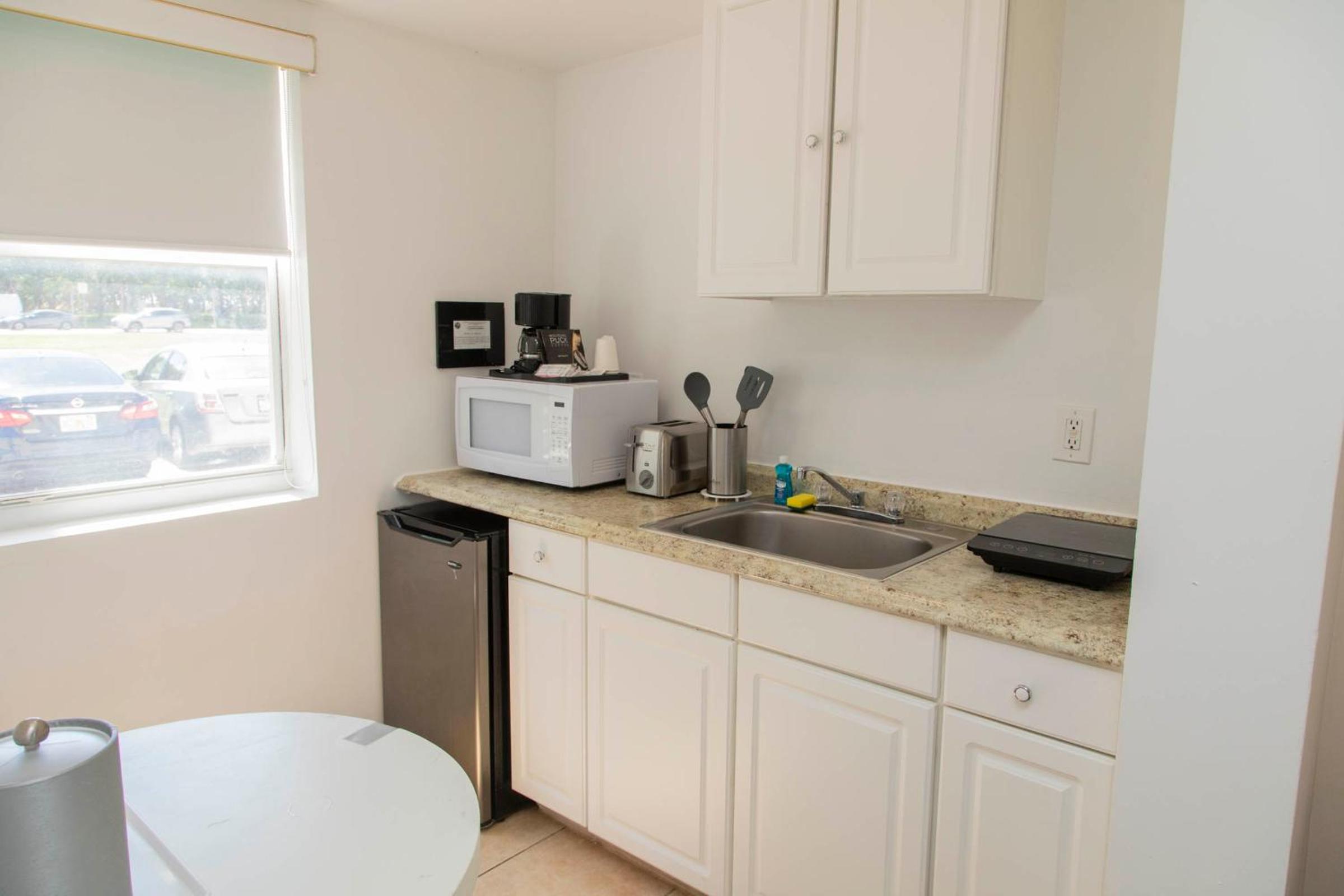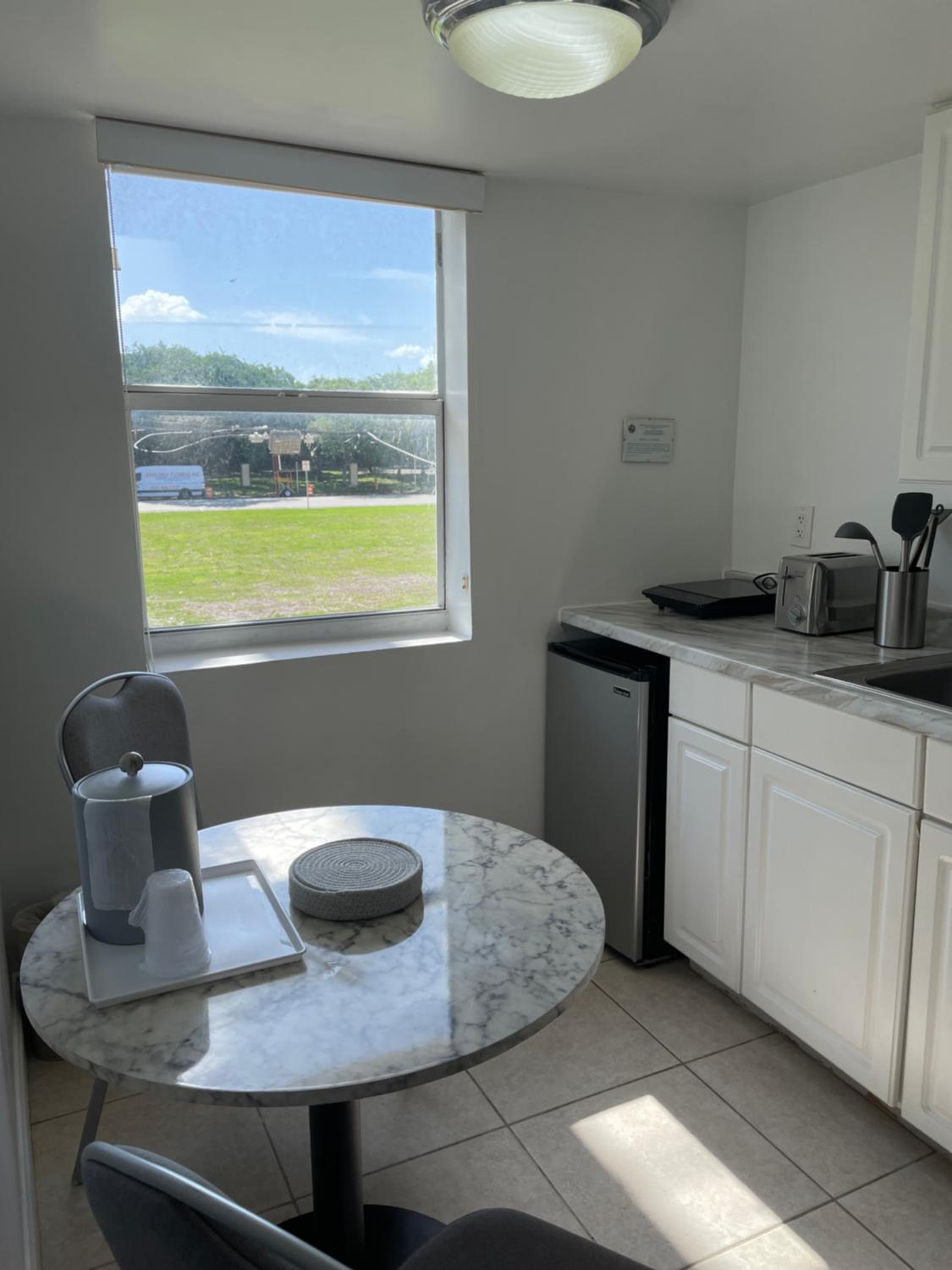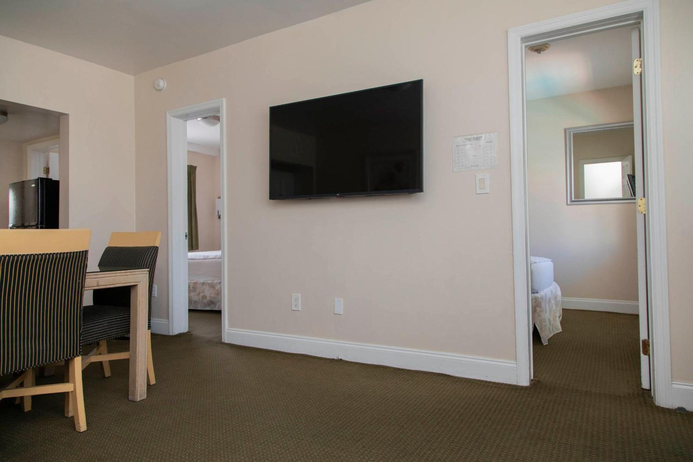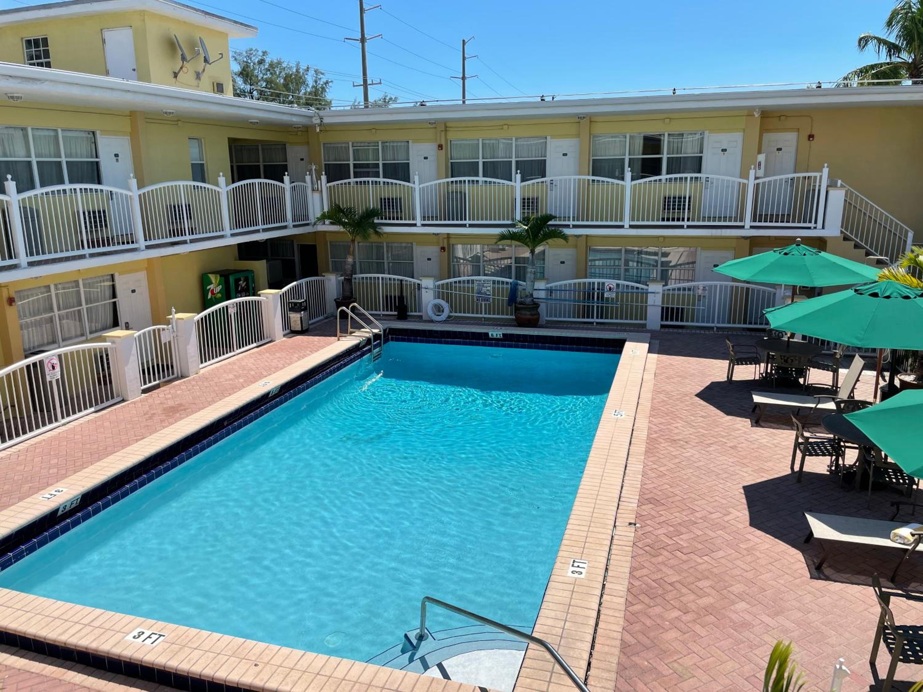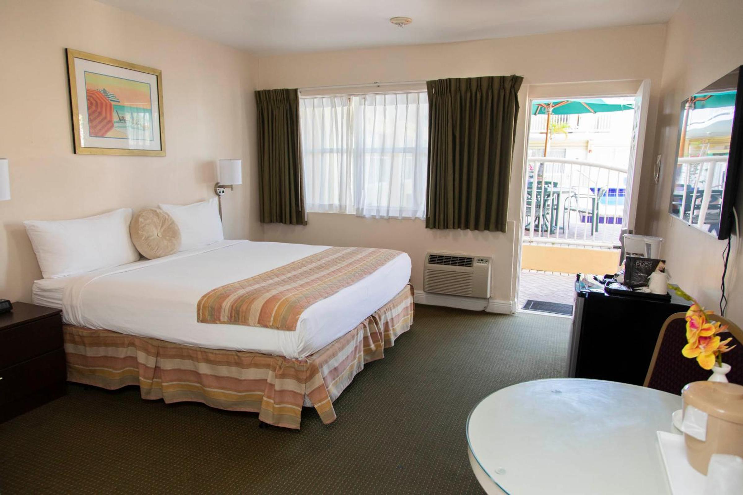 Luxurious Amenities: Enjoy our heated outdoor pool, poolside sun terrace, and complimentary WiFi during your stay. Each room features a small refrigerator, coffee machine, and a 32-inch TV with DISH channels.