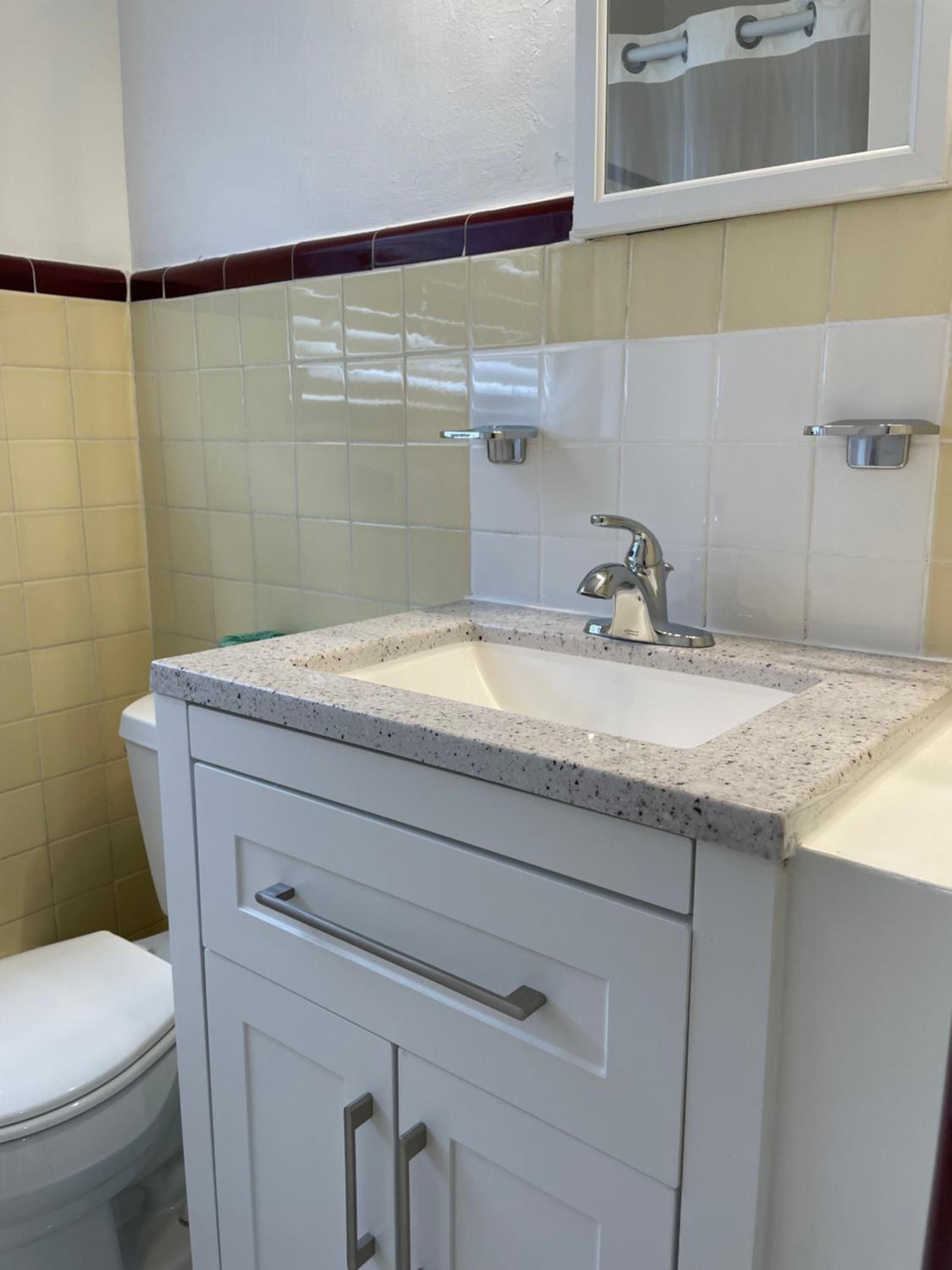 El baño es pequeño y antiguo