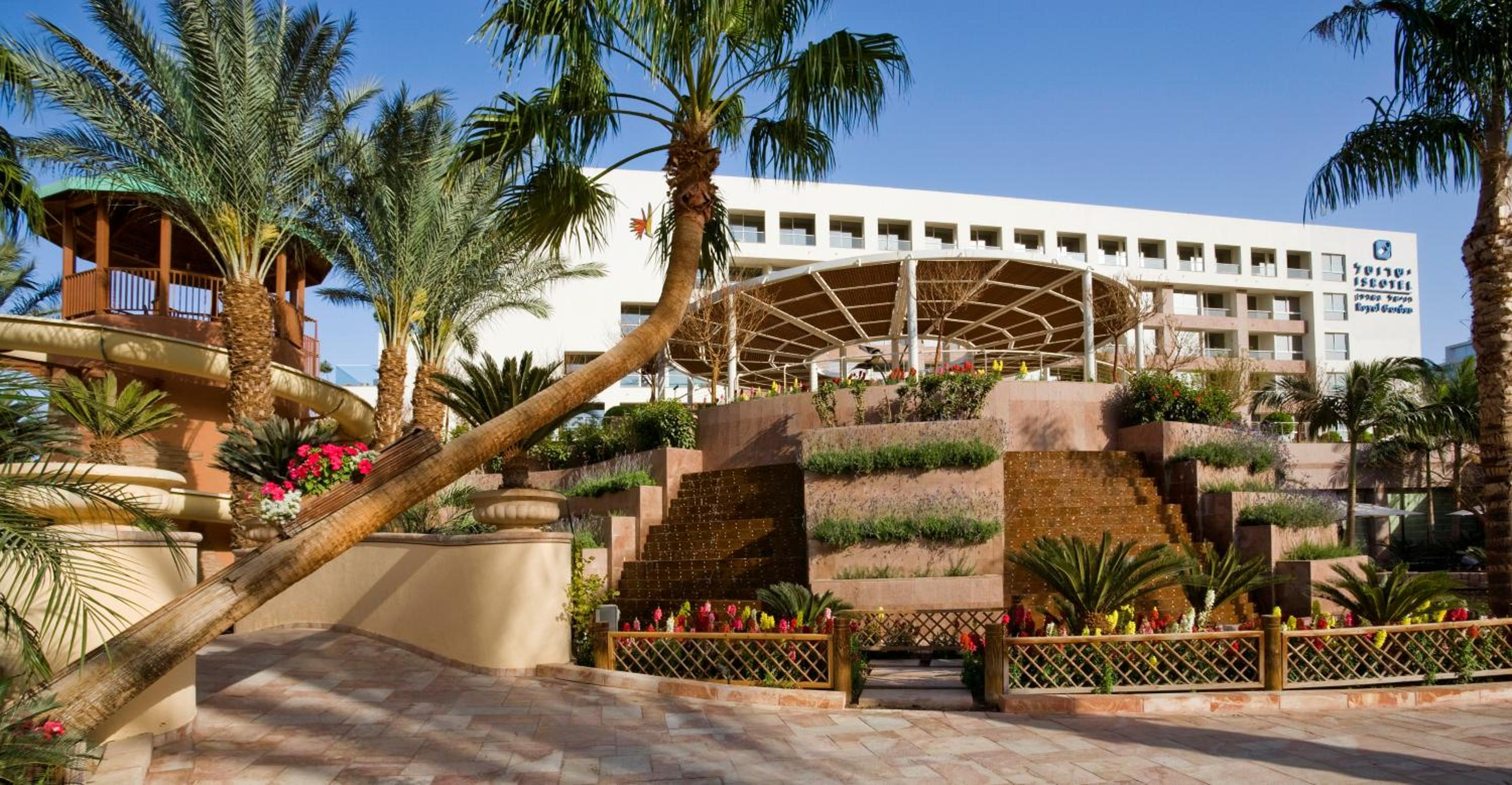 The Royal Garden hotel in Eilat's North Beach offers a serene escape with its lush palm-filled gardens and 5 free-form pools. Relax in the midst of nature and enjoy a refreshing dip in the pools.