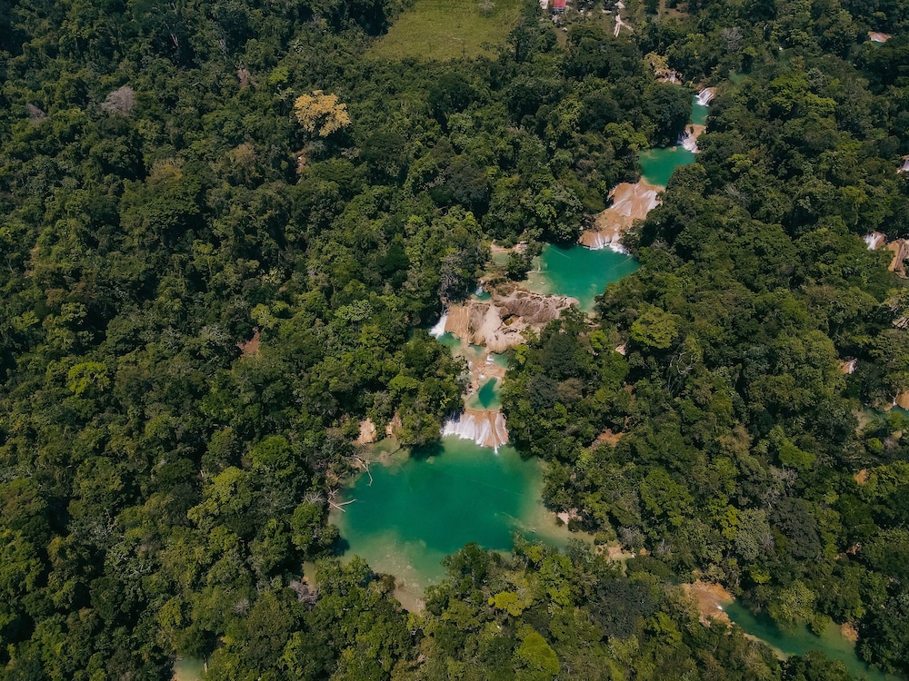Muy bonito y agradable. En el corazón de ma selva. Fue fantástico desayunar con mi esposa apreciando la lluvia en el porche de nuestra cabaña. La alberca fantástica. A 5 min del eco parque y la zona arqueológica palenque.