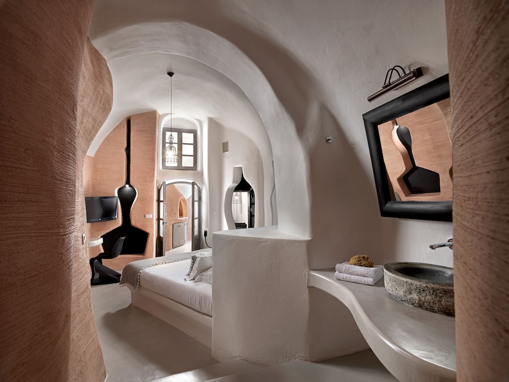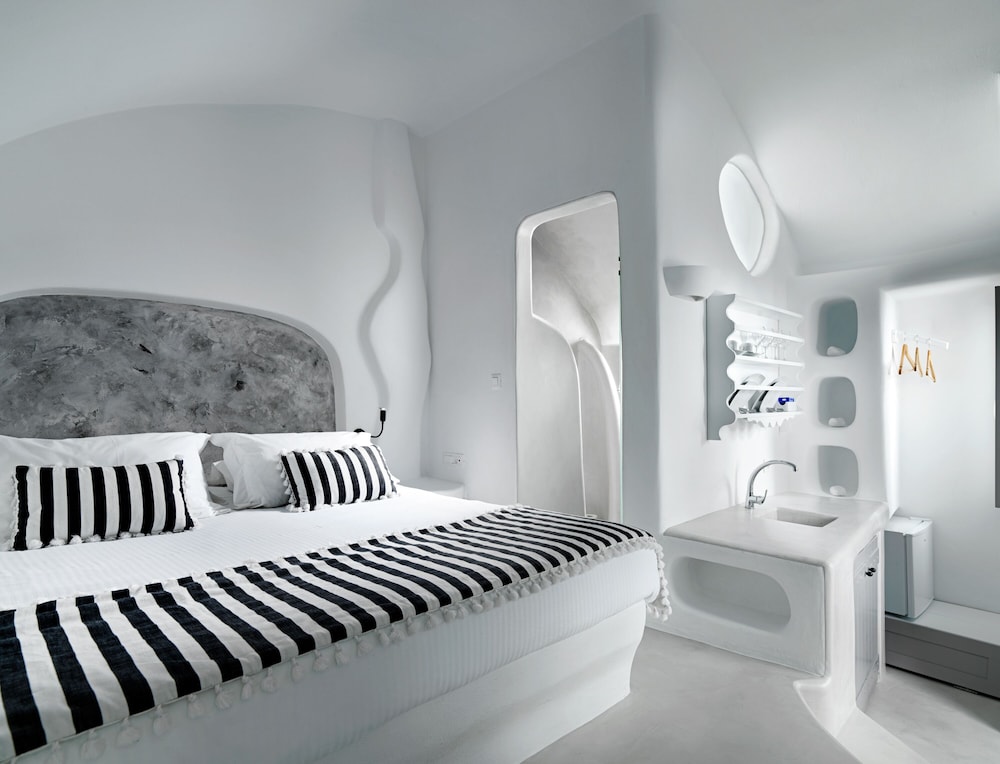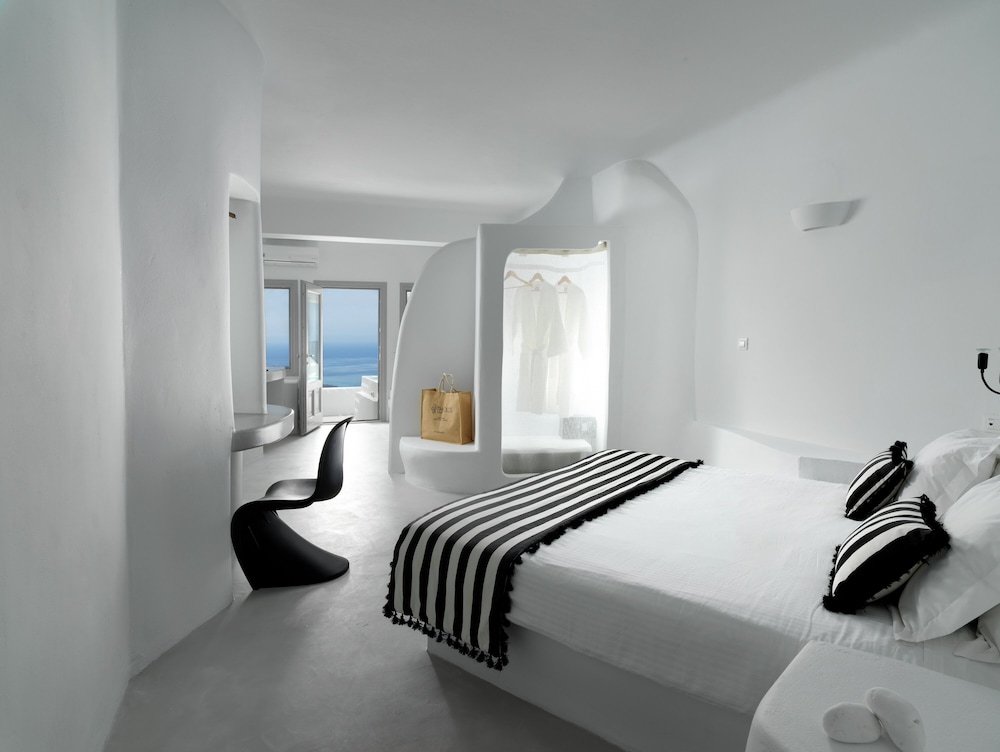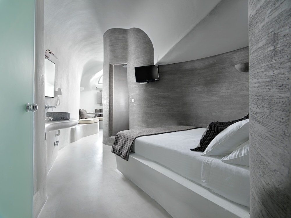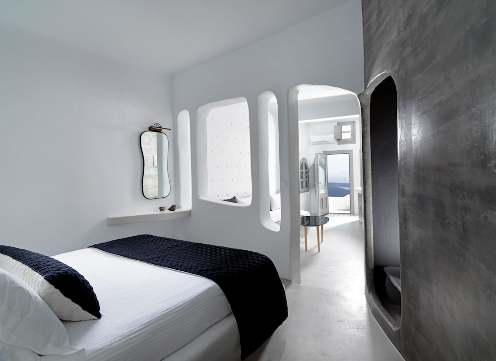 Room was clean and bed was very comfortable. I would say the bathroom would need a bit more storage because there is no paper holder for the toilet so you have to leave it on the trashcan lid. Only one hook for the towels and it’s pretty small. Don’t expect to leave your toiletry bag by the sink because it’s small too. Same for the rest of the room. Only one space to hang a few clothes by the kitchen but once you open you suitcase on the floor by the bed you don’t have much room to walk around. Having an inside pool was really nice and you have an amazing view of the bay from the windows. You order breakfast the day before via a form online. We only got about 85% of what we ordered every time. I don’t know if they were out of just didn’t read the form properly. I would recommend the hot breakfast items, they were pretty good. Staff is extremely nice and porters will help you get your luggages to and out of your room don’t worry. Overall it was a great first experience in Santorini. The room was like the island, small but charming. You just have to stay organize. We tried to go to the main hotel pool but it was full. Since the hotel is built into the cliff there isn’t much room anywhere so just keep that in mind.