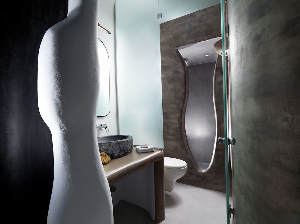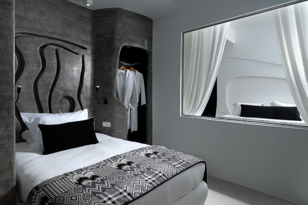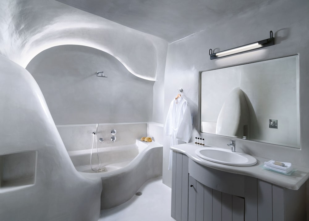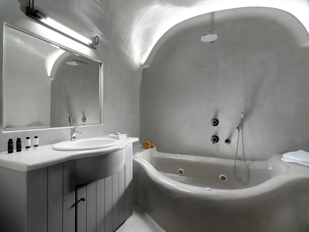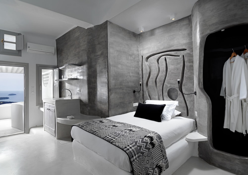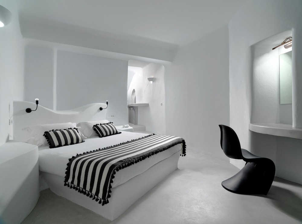 Room was clean and bed was very comfortable. I would say the bathroom would need a bit more storage because there is no paper holder for the toilet so you have to leave it on the trashcan lid. Only one hook for the towels and it’s pretty small. Don’t expect to leave your toiletry bag by the sink because it’s small too. Same for the rest of the room. Only one space to hang a few clothes by the kitchen but once you open you suitcase on the floor by the bed you don’t have much room to walk around. Having an inside pool was really nice and you have an amazing view of the bay from the windows. You order breakfast the day before via a form online. We only got about 85% of what we ordered every time. I don’t know if they were out of just didn’t read the form properly. I would recommend the hot breakfast items, they were pretty good. Staff is extremely nice and porters will help you get your luggages to and out of your room don’t worry. Overall it was a great first experience in Santorini. The room was like the island, small but charming. You just have to stay organize. We tried to go to the main hotel pool but it was full. Since the hotel is built into the cliff there isn’t much room anywhere so just keep that in mind.