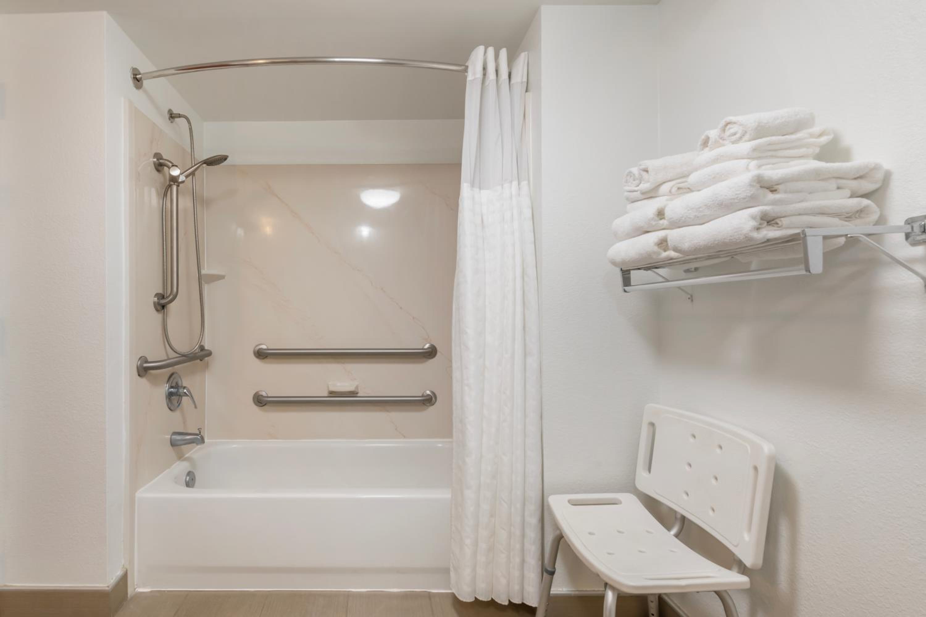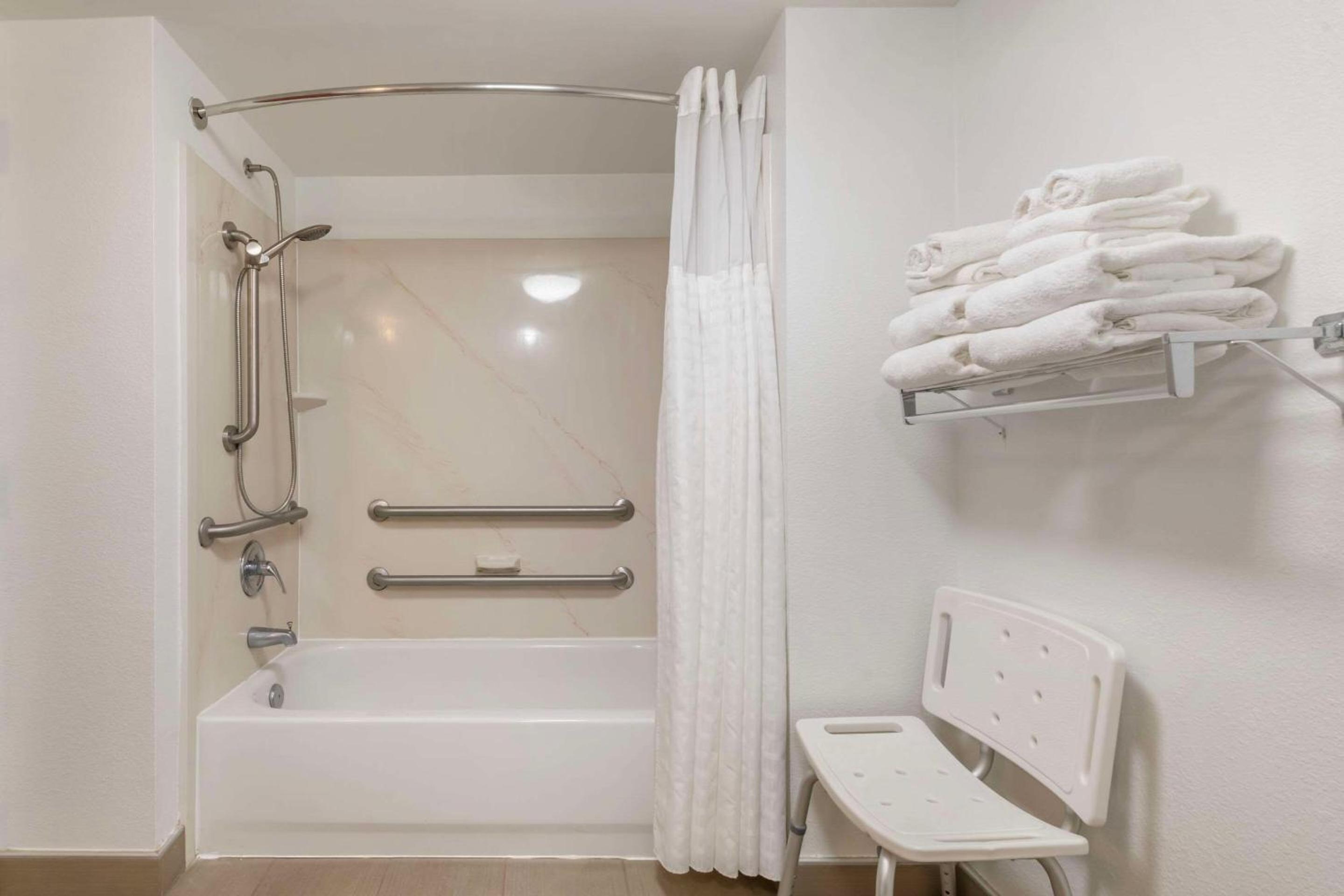 The shower head really needed to be replaced very little water came out. If you had a child They wouldn't be able to take a bath the faucet was glued on shower only. Other then that the room was great!