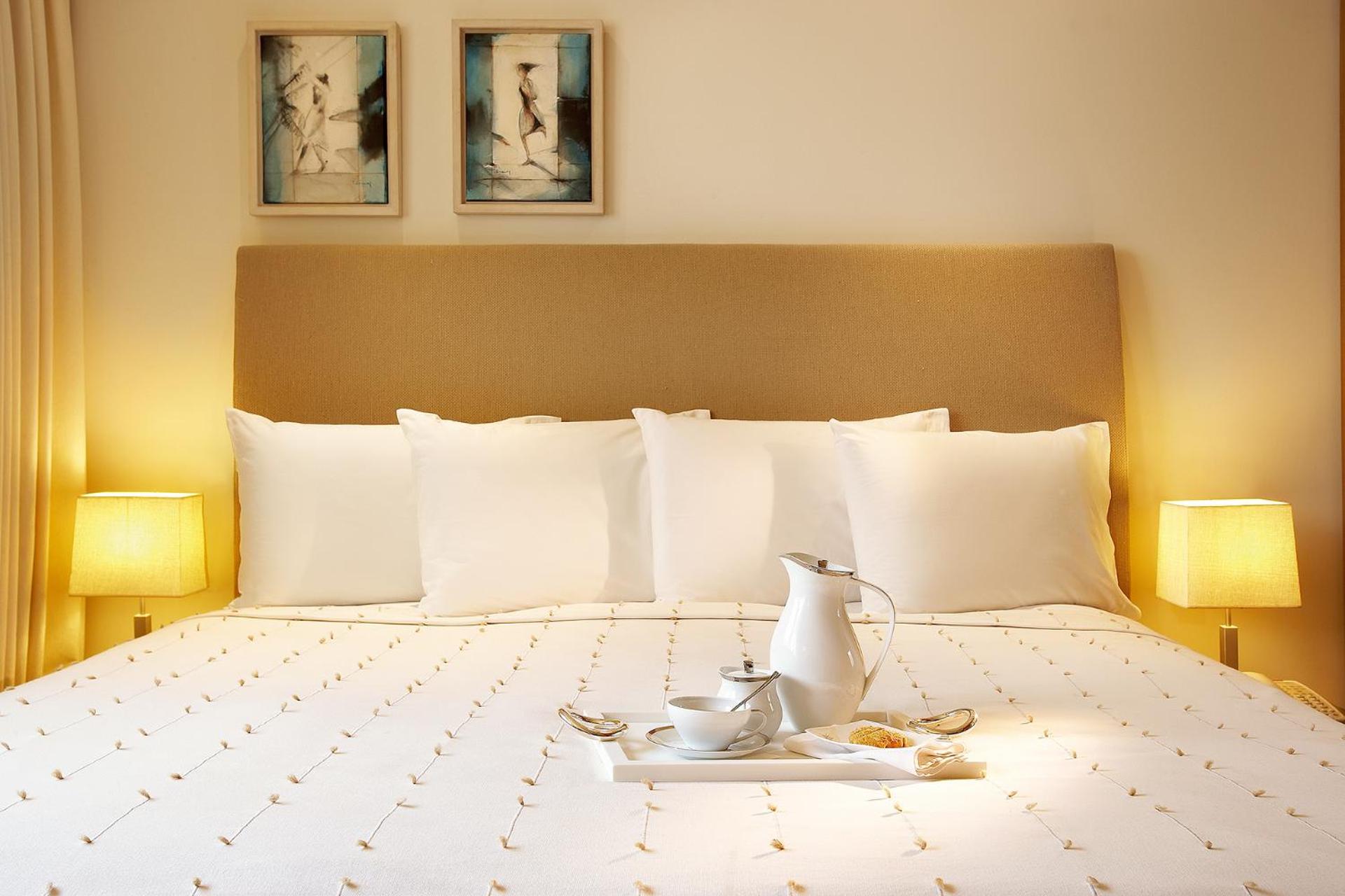 Experience discreet elegance and exclusivity in our luxury suites and rooms, all boasting splendid panoramas over Thermaikos Gulf and the White Tower. Enjoy en-suite bathrooms with separate shower cabins, complimentary bathrobes, and slippers. Relax in rooms equipped with wall-mounted LCD TVs and soundproofed windows for a peaceful stay.