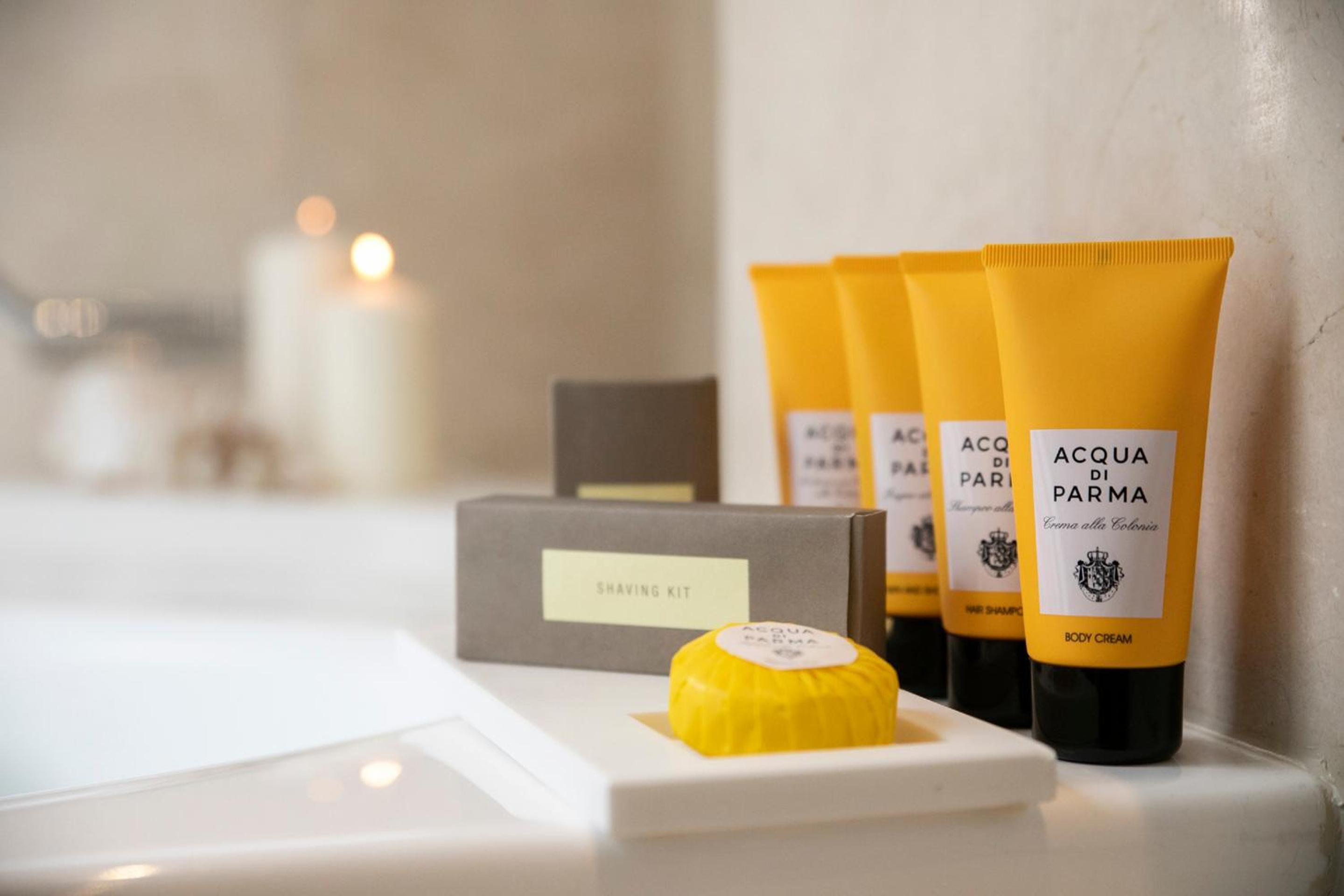 The shower gel was fixed to the wall inside the shower cabin, making it impossible to use when taking a bath.
