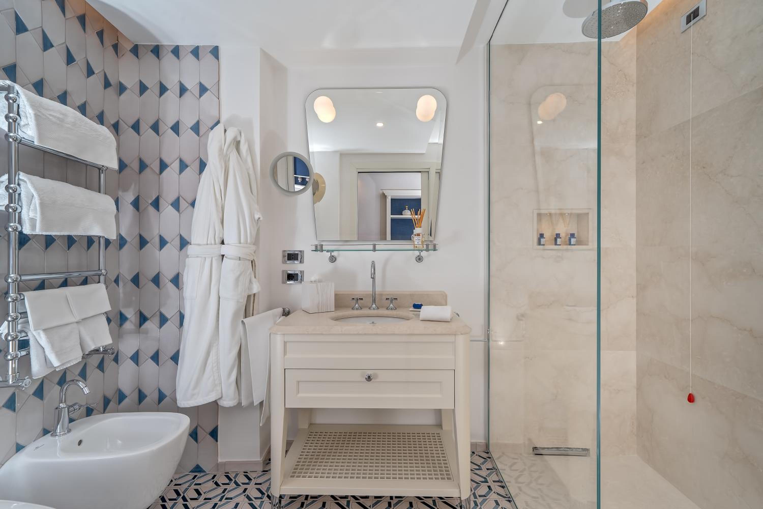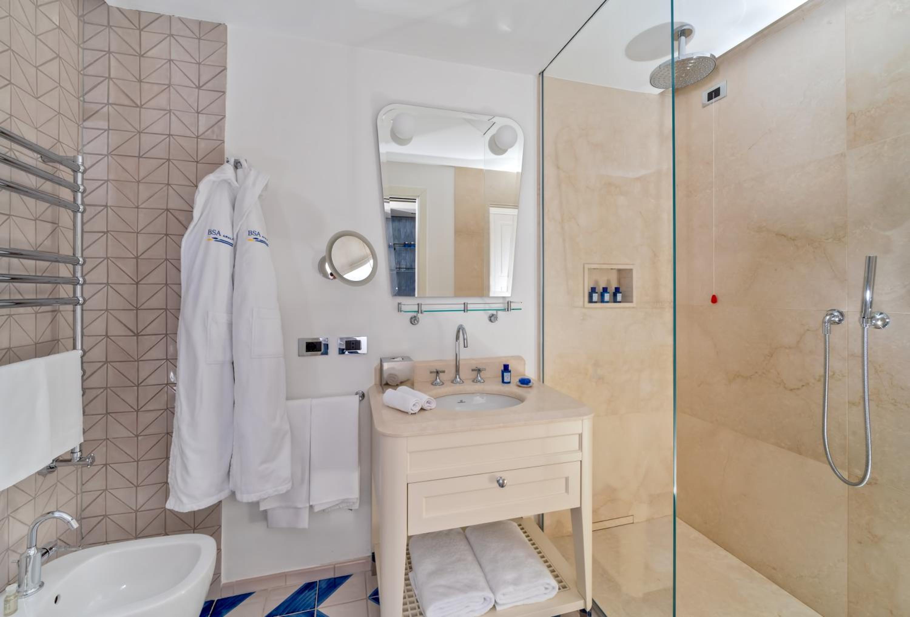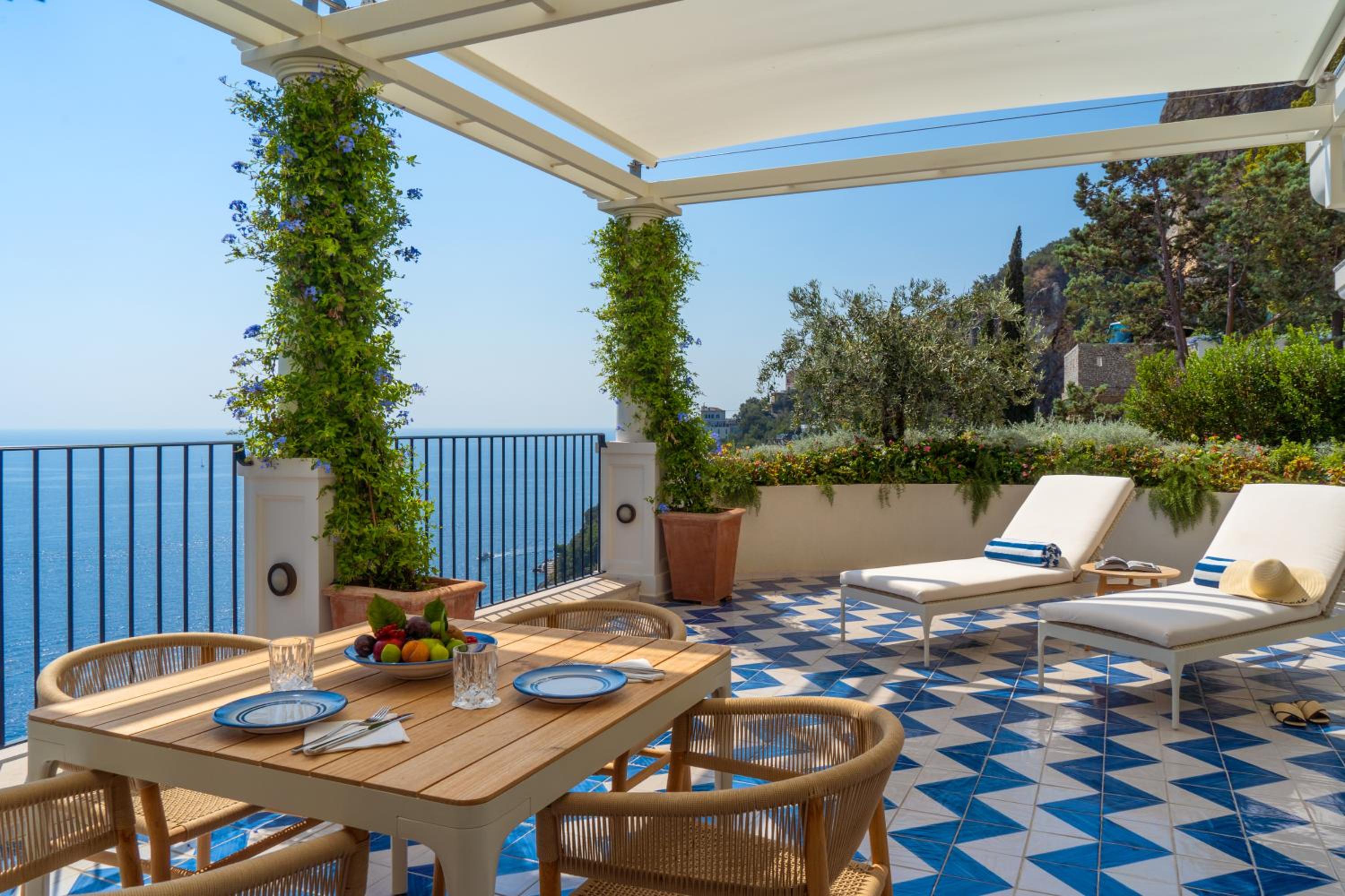 This must be the best hotel on the Amalfi coast and one of the top hotels in the whole of Italy. It is a modern, family-owned property (renovated in the last 5 years I think) that exudes cool design and discrete luxury. Built on top of a cliff overlooking the Mediterranean, you enter on the top floor and then descend through the hotel and down to the private beach. There are two restaurants (a beach trattoria and a fine dining restaurant that doubles as the breakfast restaurant). The food and service are excellent (they particularly pride themselves on the breakfast offering). There’s a 24 hour gym stocked with new technogym equipment. Our room was spectacular, with amazing views over the Mediterranean. The room was cleaned thoroughly in the morning and the maid came again in the evenings to sort the bathroom, turn down the bed etc. Maintenance deserves to be mentioned; the hotel is spotlessly clean and obviously well maintained. I have travelled widely and visited many great hotels, but this has to be the best I have ever stayed in.