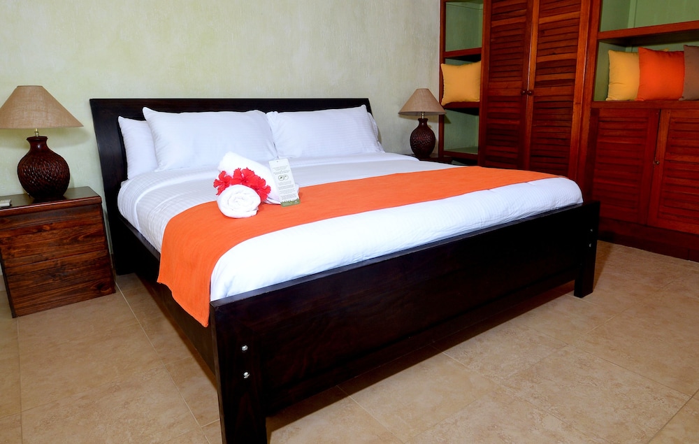 The website was completely misleading, but after accepting what they actually had to offer it is a nice resort and we had a great time. The website said the rooms would have sofas, they did not, and it said that there are 2 restaurants, there was 1 and it was buffet only. On multiple days housekeeping left us short on towels. That aside, the food was good, the rooms were clean and the air conditioner worked well to keep our room cool and dry, the pool was clean, the staff were wonderful (especially the servers and bartenders), the grounds were well maintained, and the beach was amazing. They need to update their website so people realistically know what to expect.