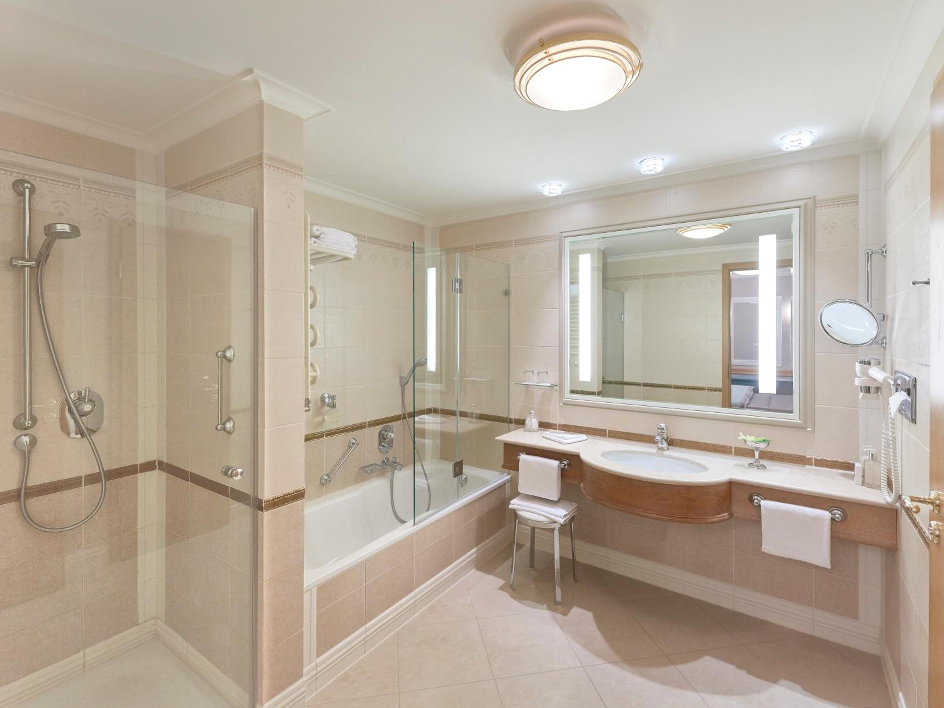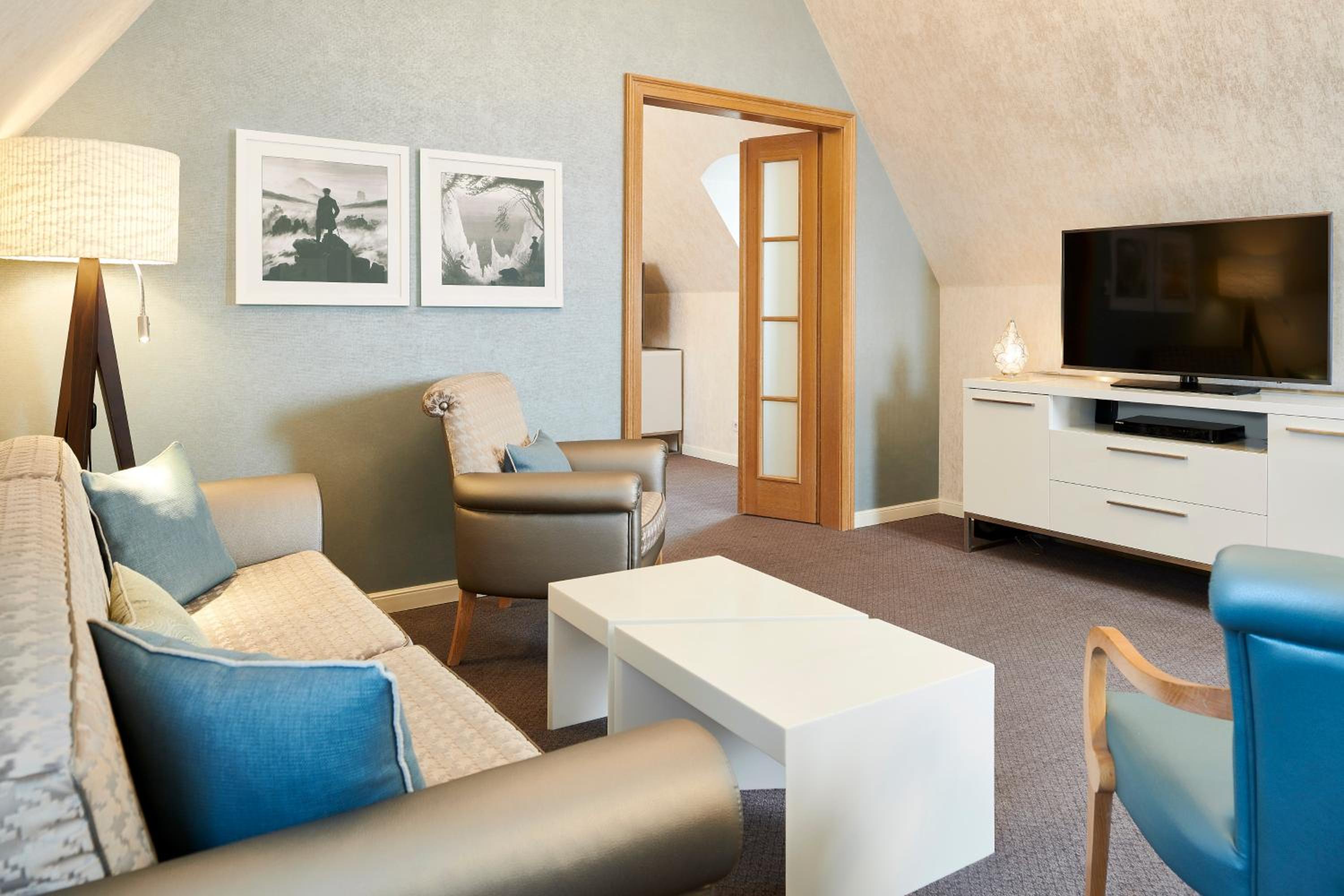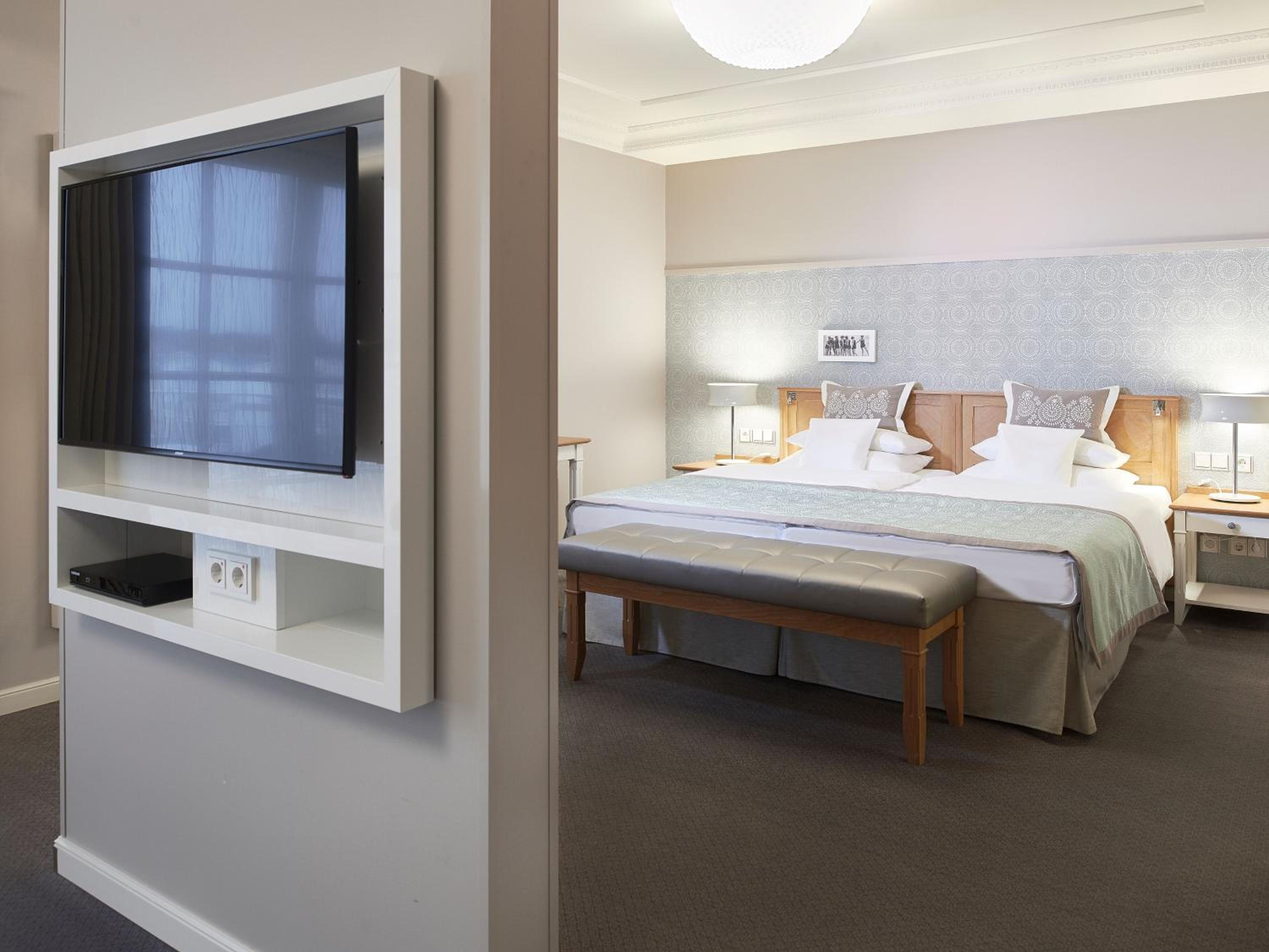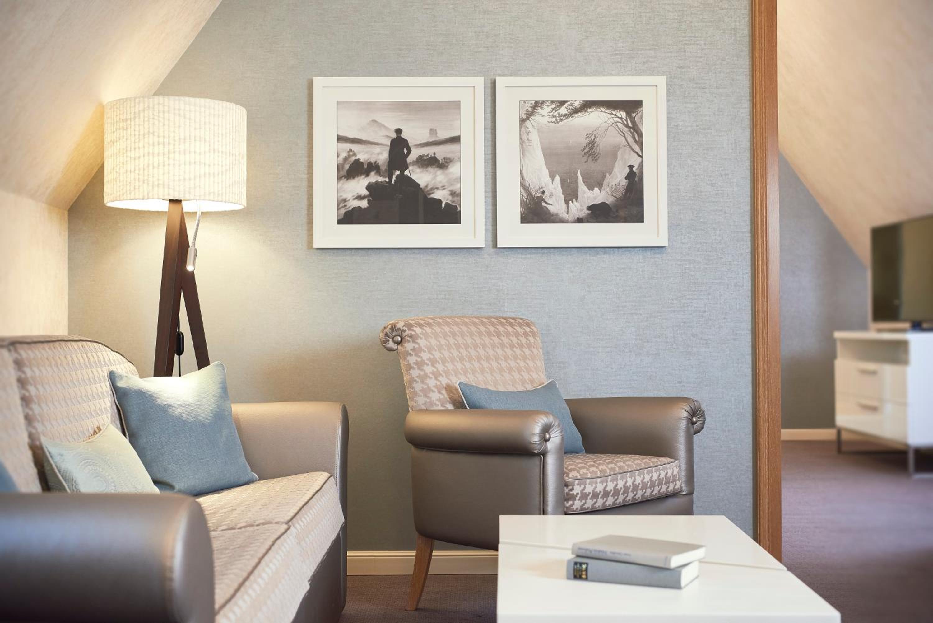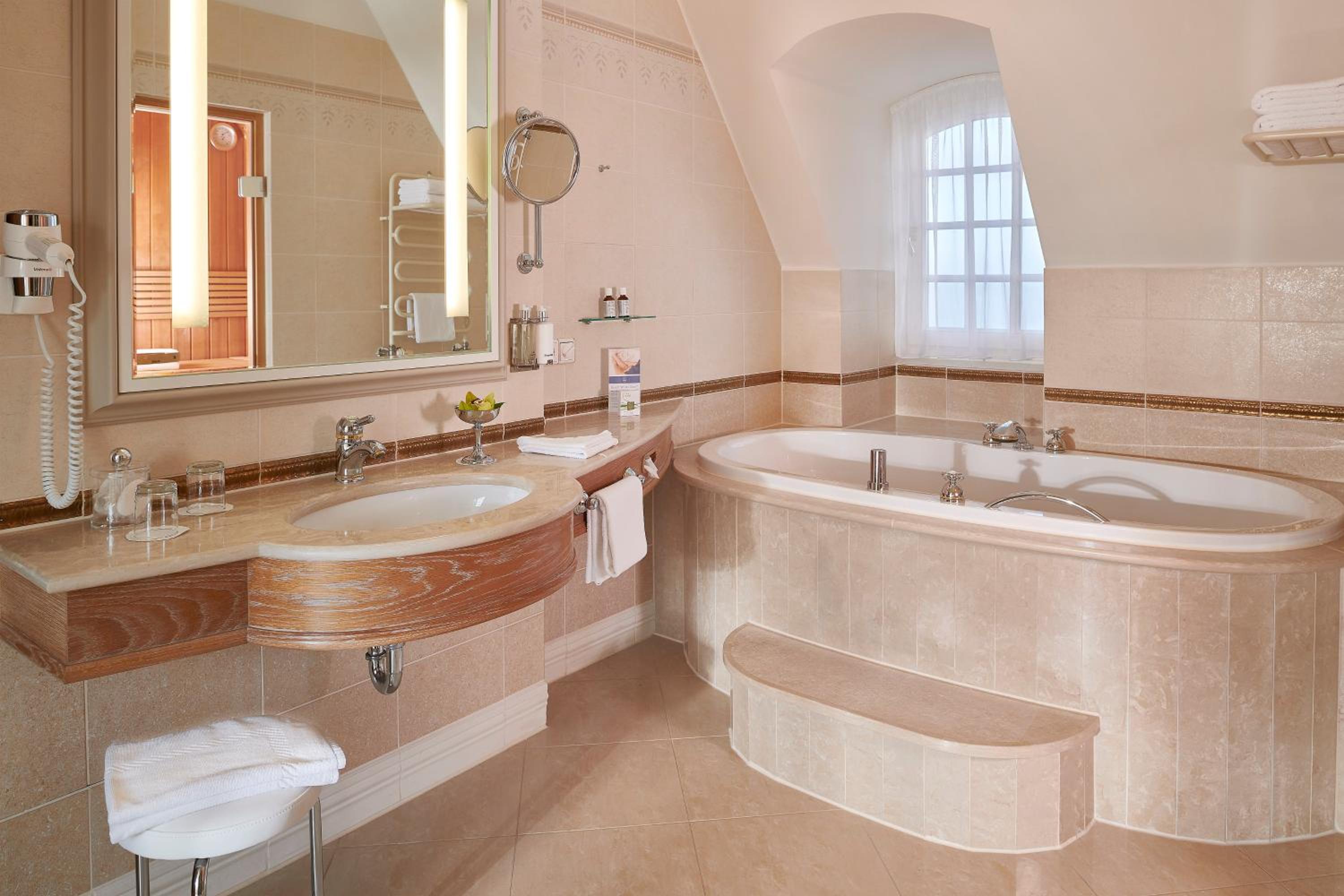 Experience elegance at its finest at Travel Charme Kurhaus Binz. Our rooms feature balconies, free wired internet, and overlook the picturesque Binz Beach and Pier. The classic beach-style architecture adds a touch of charm to our spacious non-smoking rooms and suites, all equipped with air conditioning and cable TV. Indulge in comfort with complimentary bathrobes and slippers provided.