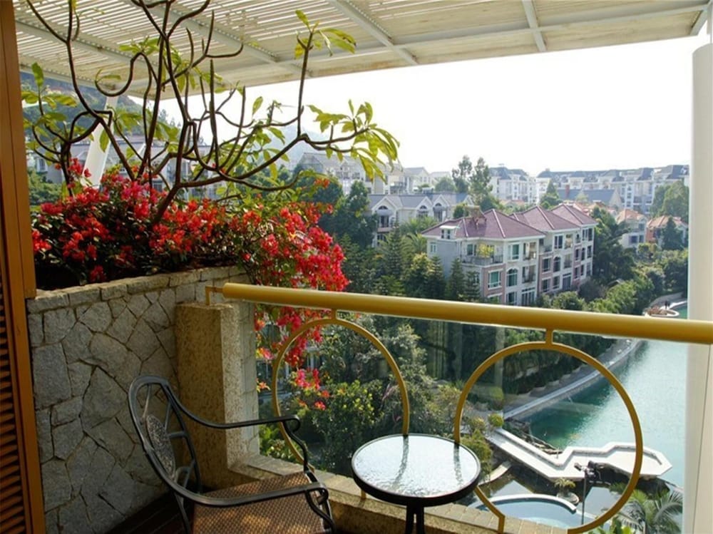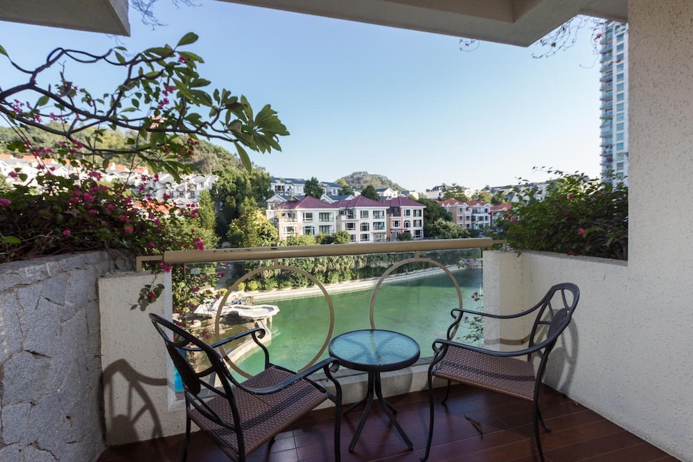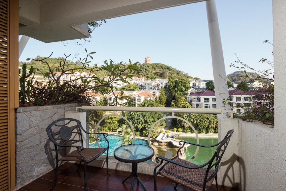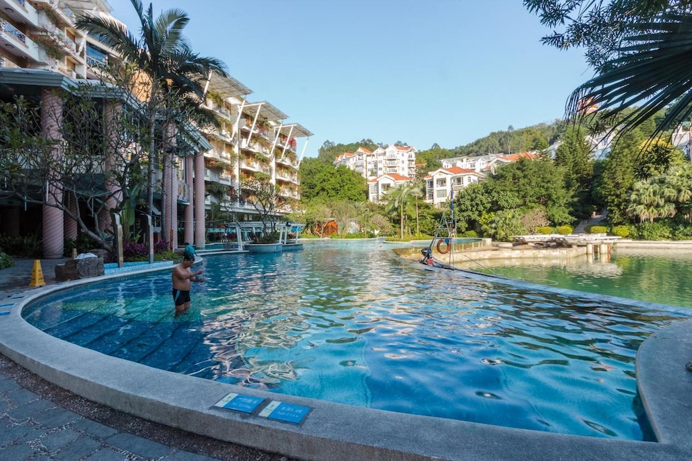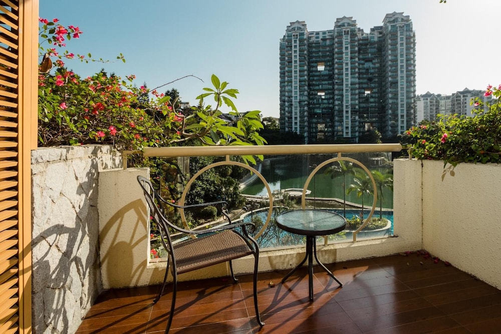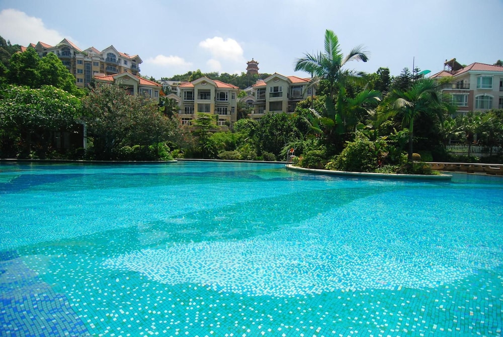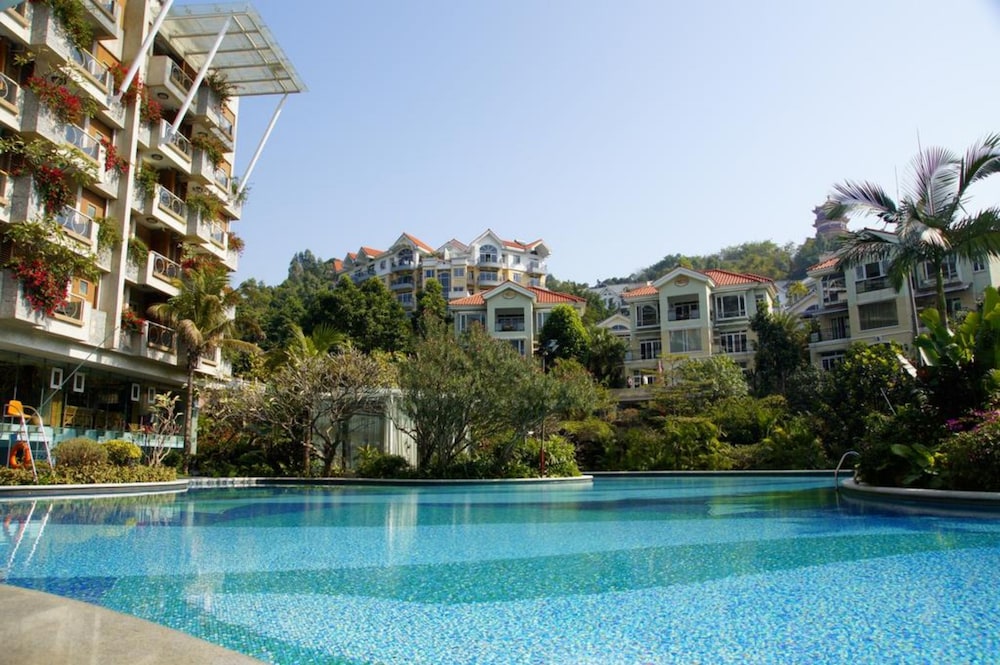 The grounds are gorgeous. There is a huge outdoor swimming pool which is shared with all the apartments, but is quiet on a morning for a swim. When you book ask for a room facing the back and you have a great view of this. After a day working in Guangzhou it is very relaxing.