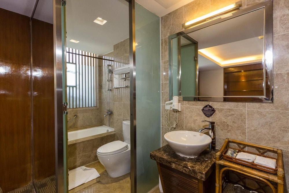 這酒店真的不錯. 又是休閒式酒店又緊市中心.12元人民幣出租車或步行20分鐘可到市中心. 酒店服務員一般都很熱誠款待.特別是前台的何經理.另外.酒店屬5星罷.有遊泳池.健身室.商務中心.KTV.massage. 亦有中及西餐廳提供多元化食物.熱食亦美味.公平一點.我會給它五星