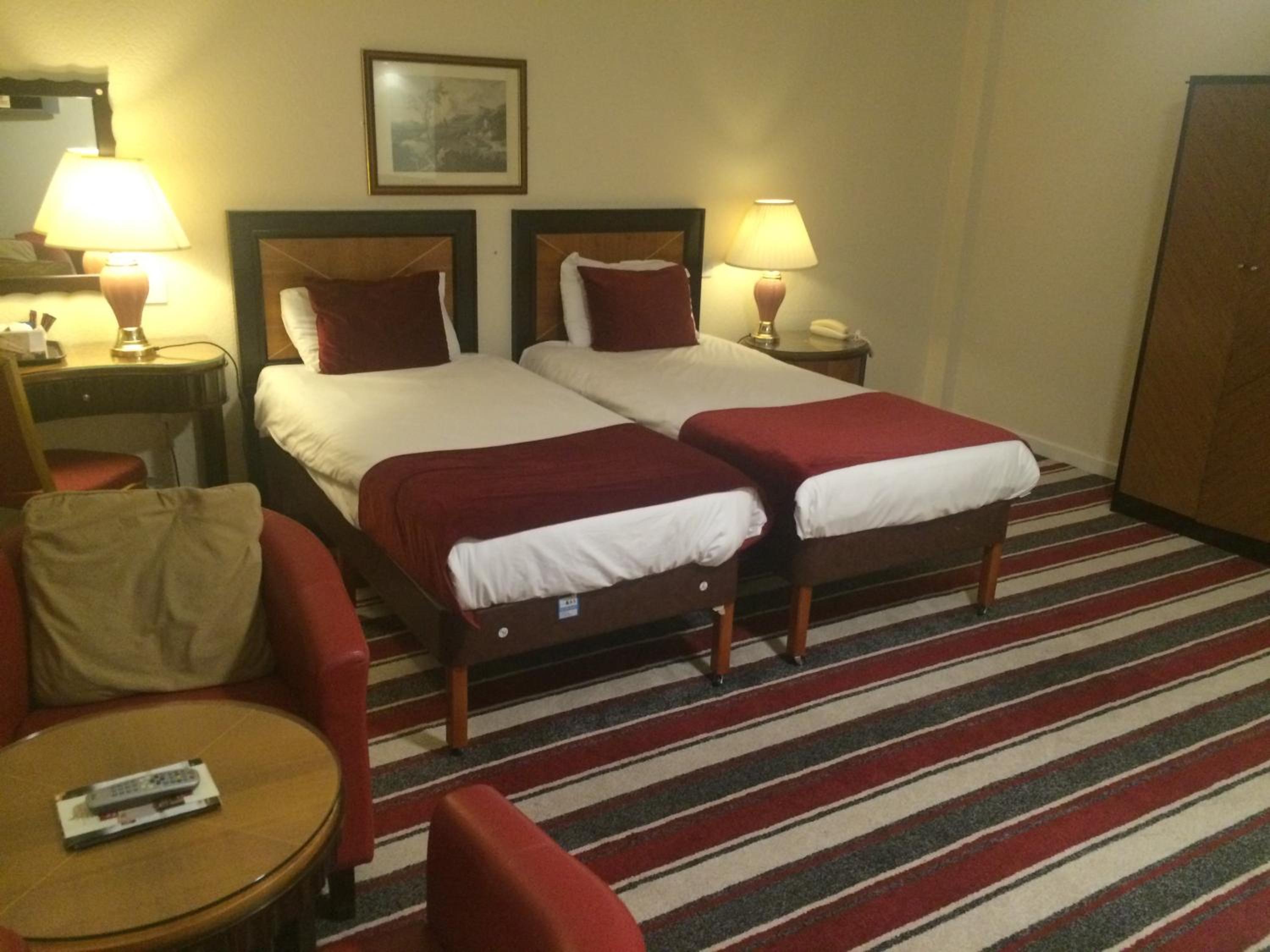 Hotel was ok but 3 with same name was confusing.room was ok. Went to bar for drink having had meal elsewhere,and it was chaos there were children running riot !! Amanager had words and it eased off but they closed the bar early as a result which was disappointing , felt sorry for barman he didnt know what was going on and obviously didnt have any backup as was probably nervous of reaction to children being reprimanded so left it. People who behave like ths ruin it for the rest of us and should be removed we all paid money out so should be able enjoy our stay without any problems, unfotunately whn bookings are made you cant see whos booking ,these people know that as they lnow would not be accepted and rightly so !! I left a dress behind and went back to see if it was still there, luckily it was, manager kindly let me go to lost property and look for myself which i appreciated, they were nice on reception and decent about parking which was horrendous due to lack of space and there being a festival on and bank holiday with lovely weather as well lots of people about so on the hole experience not too bad ,cant choose their guests so not their fault