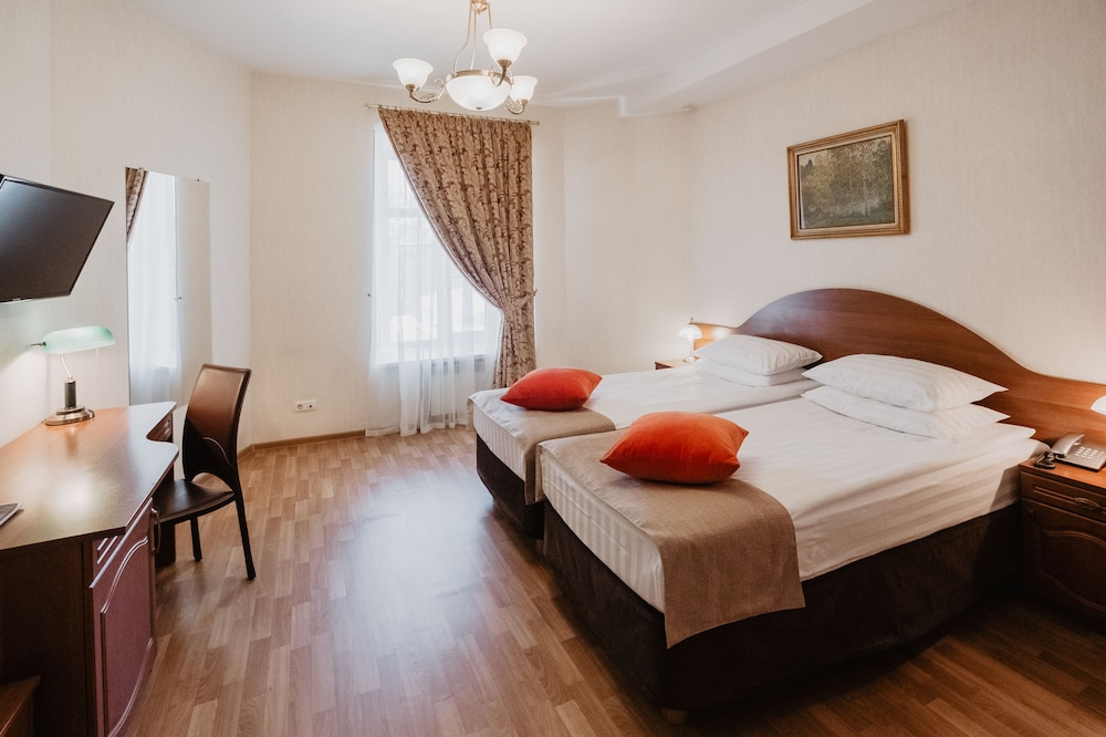 The hotel is very nice. The staff are very helpful and kind. All know English and speak very well. The hotel is not in the center but not that far away, like 30 min walk to the Hermitage. The breakfast is very basic, nothing special. Our room was spacious and the bed was comfortable. Even though out windows face the street, there weren’t noises.
