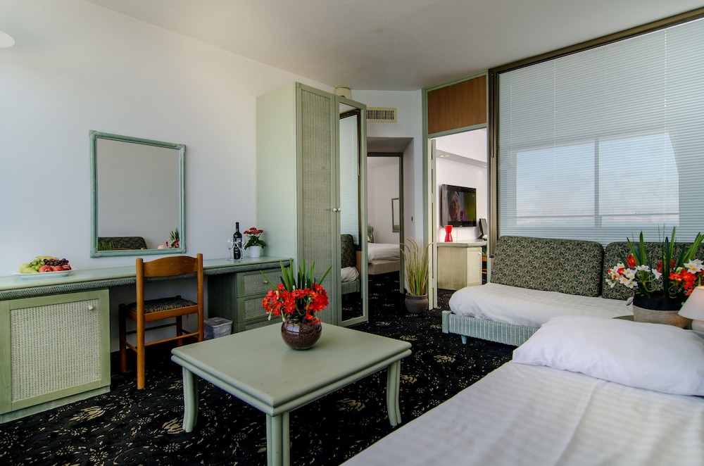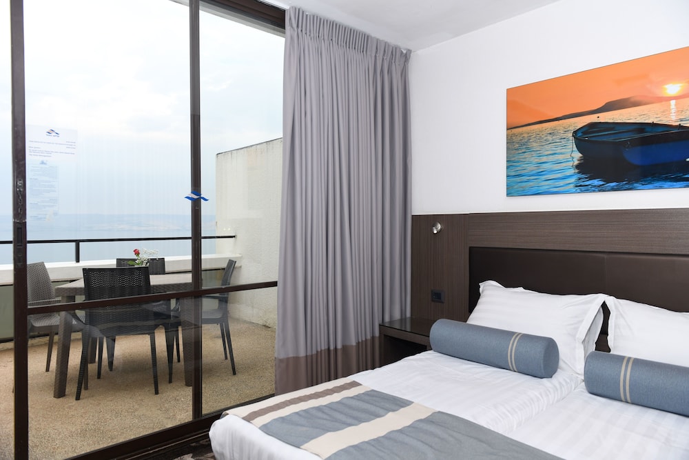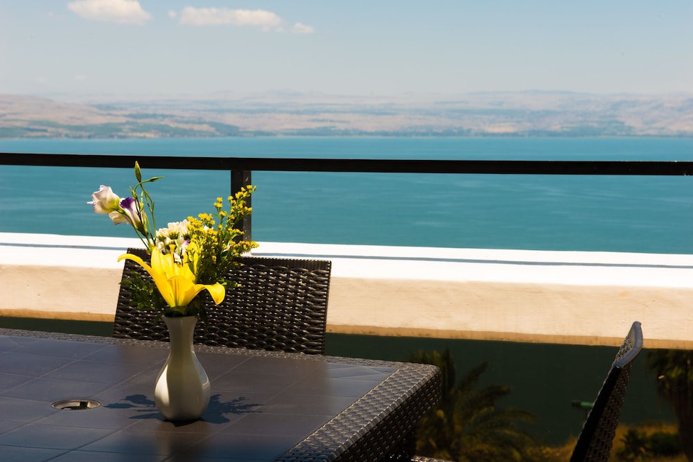 Todos os quartos hotel tem uma visão ótima do mar da Galileia.