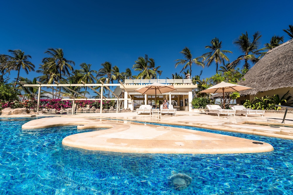 This 5* hotel is located on the beach which we didn't go on as when you went near the "beach boys" would be straight at you. The hotel is Ok but what stands out is the staff - they go above and beyond for you. The food, which is mainly cooked to order, is of good quality and enjoyable - sometimes the menu description wasn't always what you got though. The rooms are large and spacious and were clean - the air con is not the best. The bathroom is large but does not have air con so it was like walking into an oven and was not pleasant. The pool was a good size with a large area for sun beds but with very few beds there. The few beds that are there are very old. The spa pool is lovely with extremely comfy beds and very peaceful but you have to pay extra for that. I don't know where the 5* rating comes from but you have to remember you're in East Africa. If this hotel had a refurb it could be a fantastic place - I will miss it and the lovely people that work here.