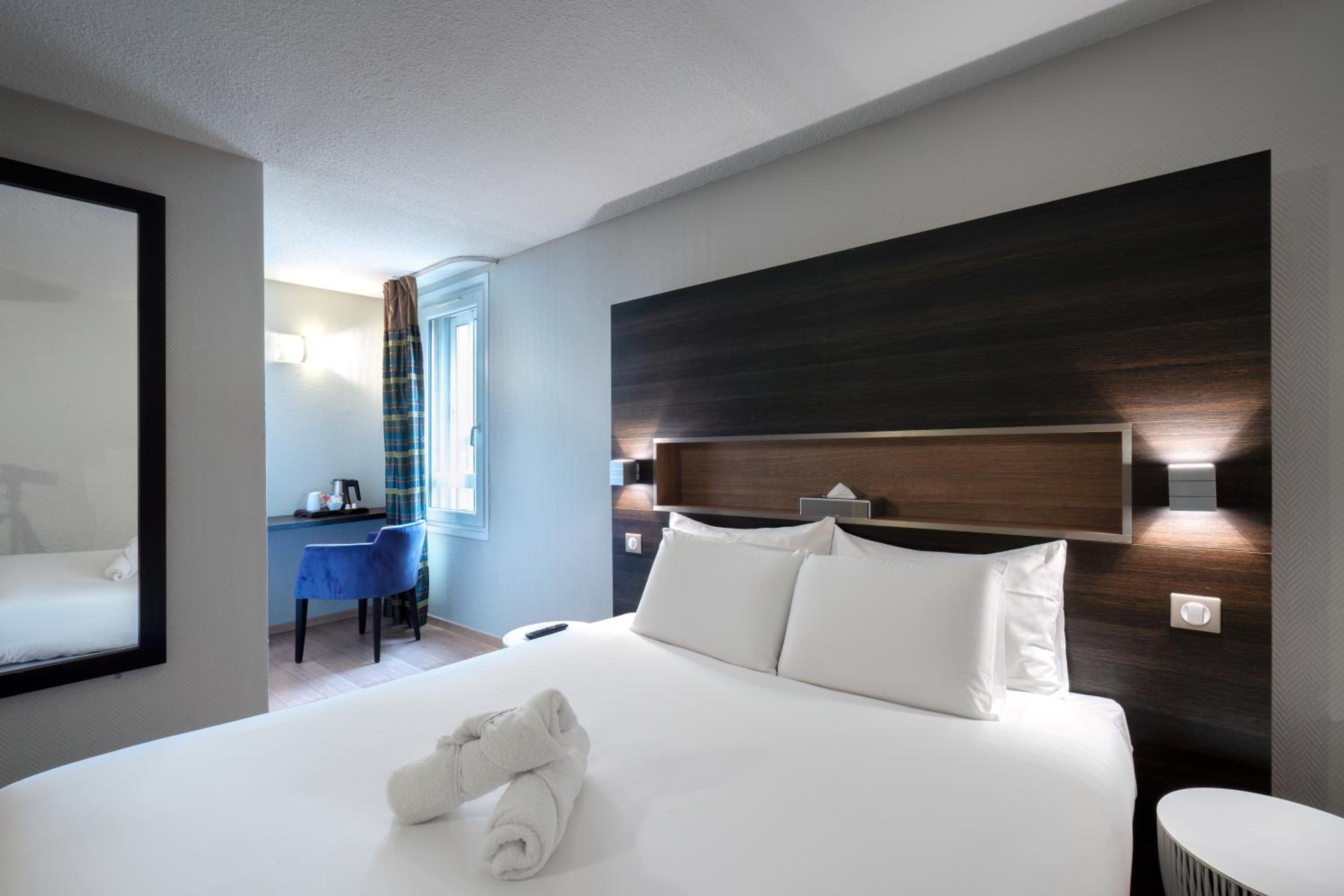 Luxurious Rooms: Enjoy the comfort of flat-screen TVs, Canal+ channels, and spacious work areas in every room.