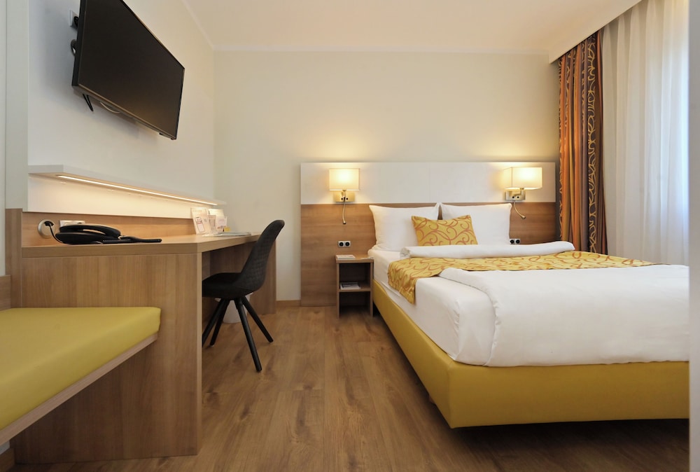 Wir waren vor fünf Jahren schon einmal für zwei Nächte hier. Glücklicherweise hat sich nichts zum Negativen gewendet. Der Empfang war überaus freundlich. Sollte man Informationen benötigen, bekommt man sie schnell. Als Reisende mit PKW schätze ich den kostenlosen Parkplatz. Ebenso die Bus-Anbindung (Haltestelle direkt vor dem Haus) Richtung Fußgängerzone, die es einem abends ermöglicht, das Auto stehen zu lassen. Zur Nacht kann man sich im Erdgeschoß noch mit Getränken oder Snacks versorgen. Wir mögen es gern, wenn man das Fenster im Zimmer öffnen kann. Das Frühstück umfaßt so viele kleine Aufmerksamkeiten - da wird jeder fündig. Toll auch, daß der Kaffee noch in der Thermoskanne auf den Tisch kommt. So muß man nicht für jede Tasse an einem Automaten Schlange stehen. Sollte es uns noch einmal in diese Gegend verschlagen, entscheiden wir uns mit Sicherheit wieder für diese Unterkunft.