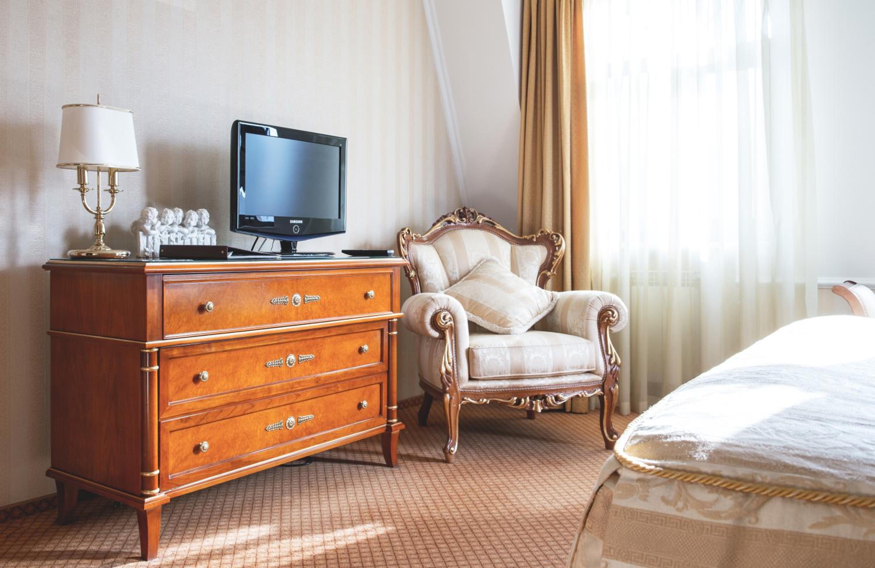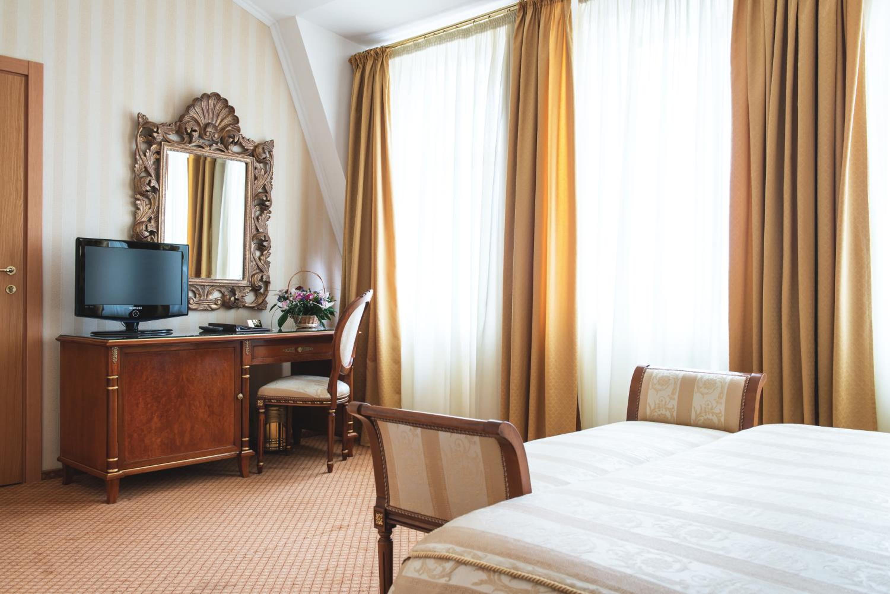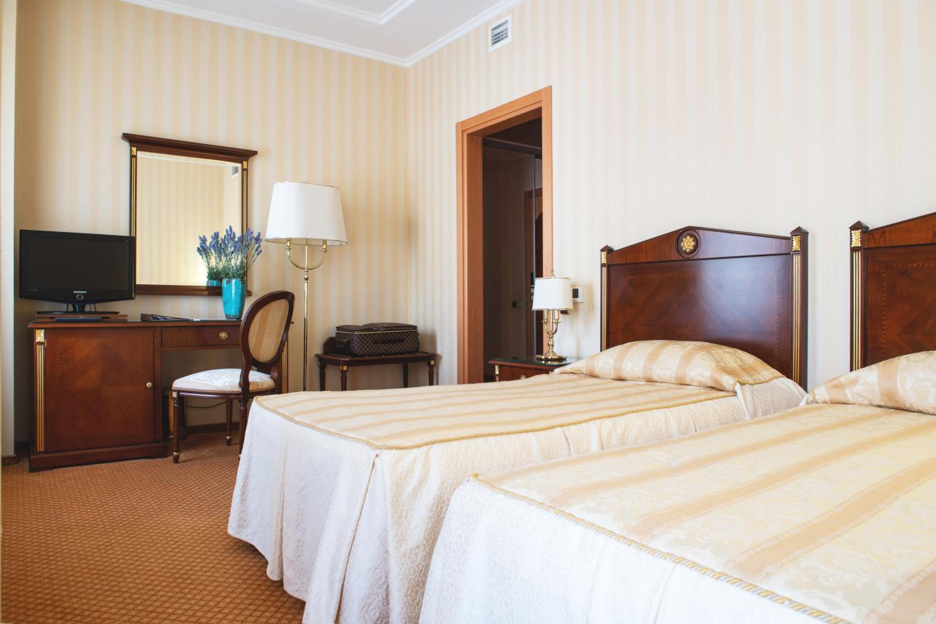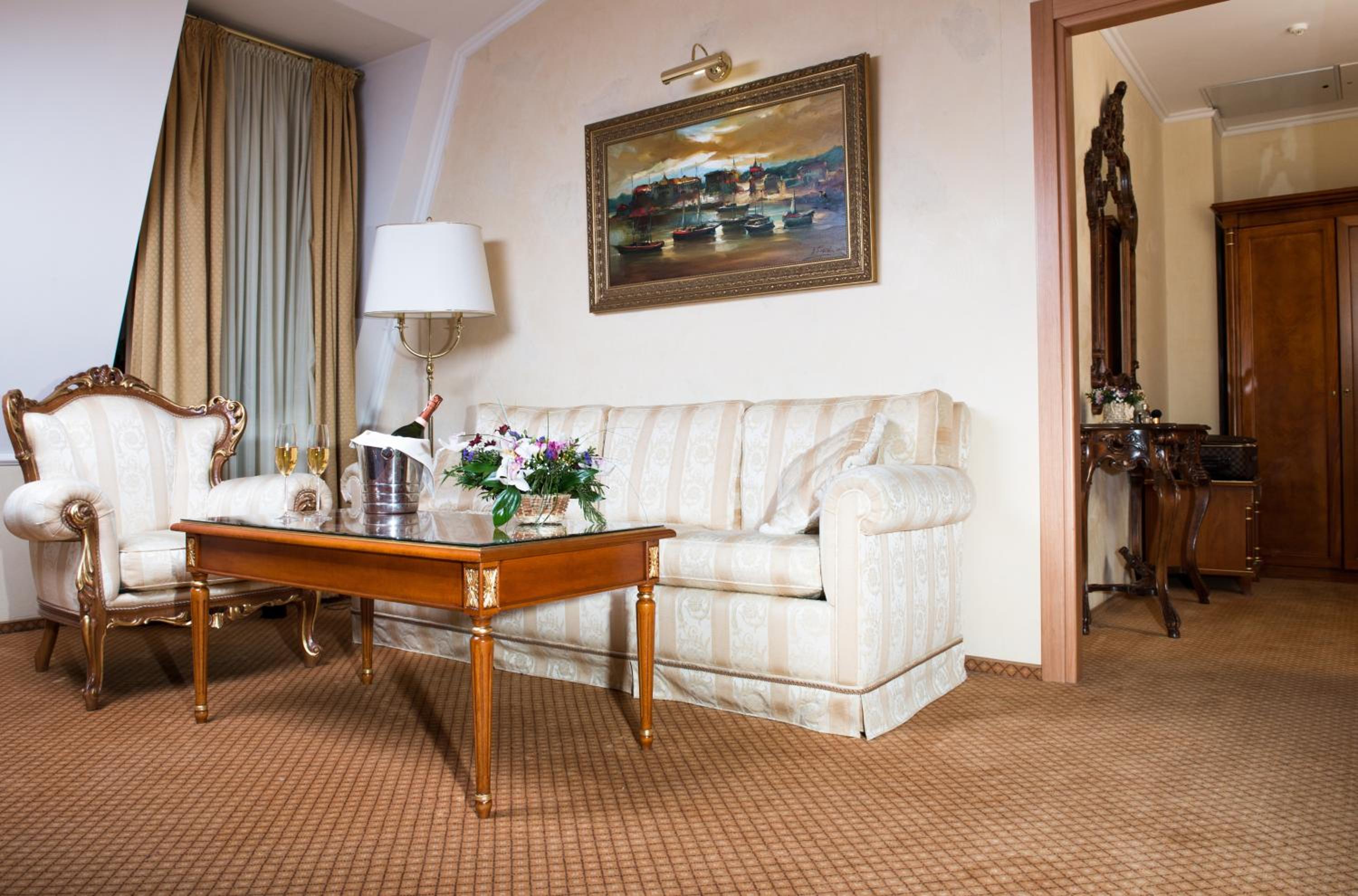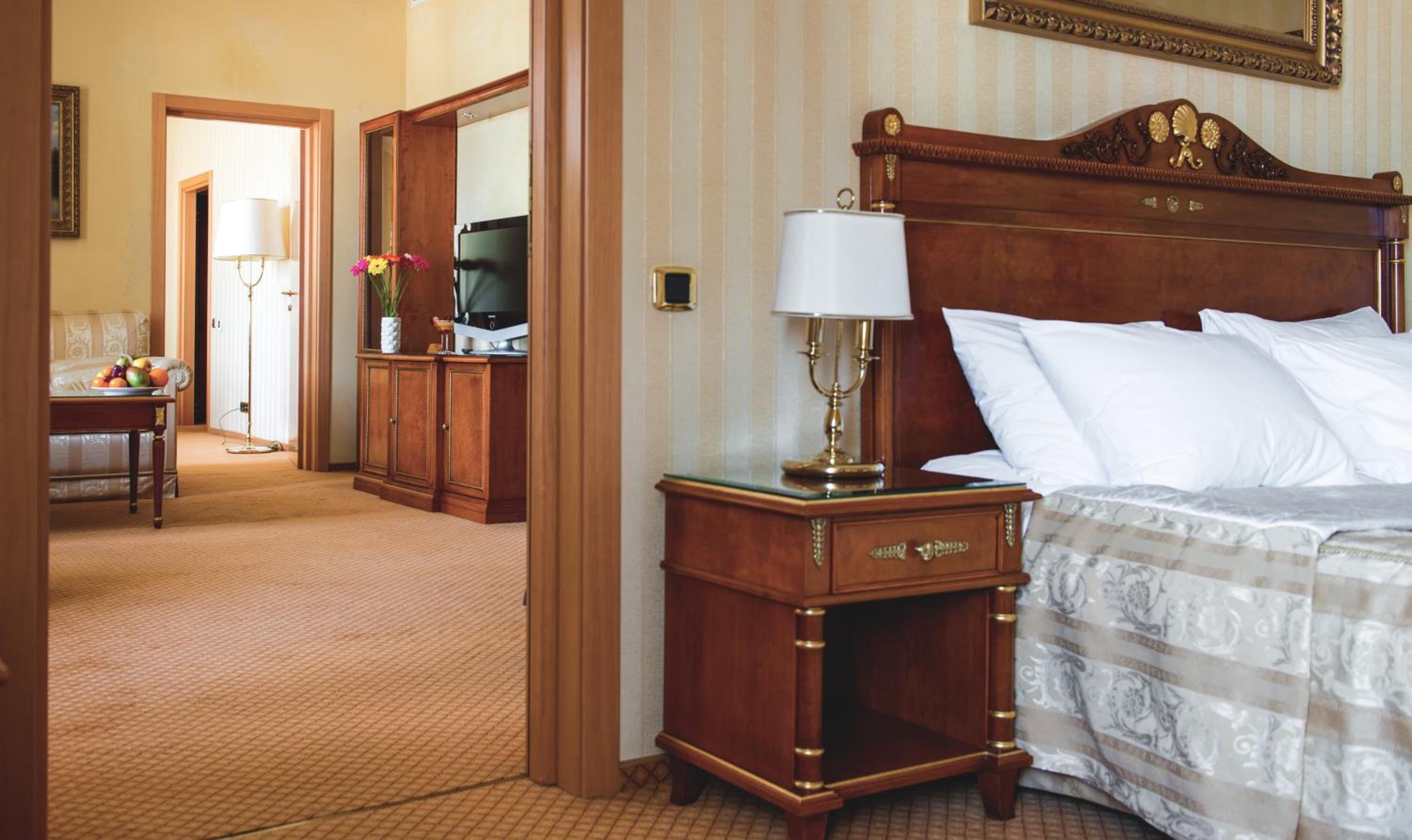 Номер напів-люкс доволі просторий - дві кімнати (одна вітальня і одна спальня) з приємним декором у класичному стилі.