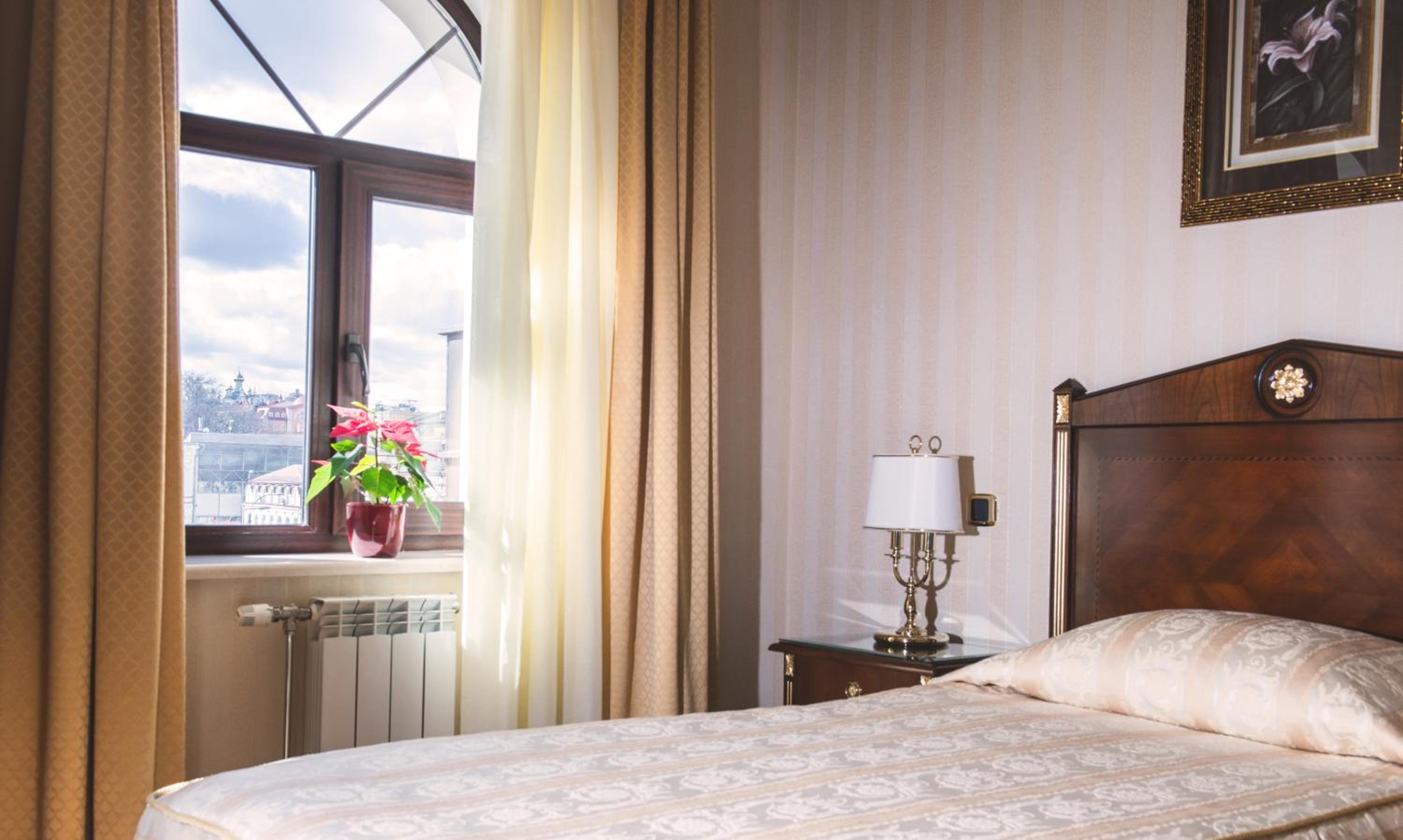 Дуже чисто в номері. Є багато чого корисного, гудзики, голка, нитки, тремпелі, шампунь, гель для душу. Капці не дуже якісні. Халату не було. Вікна номеру виходять на внутрішній двір, досить тихо та затишно. Сніданок не дуже великий асортимент, але все смачно. Персонал в ресторані привітний.