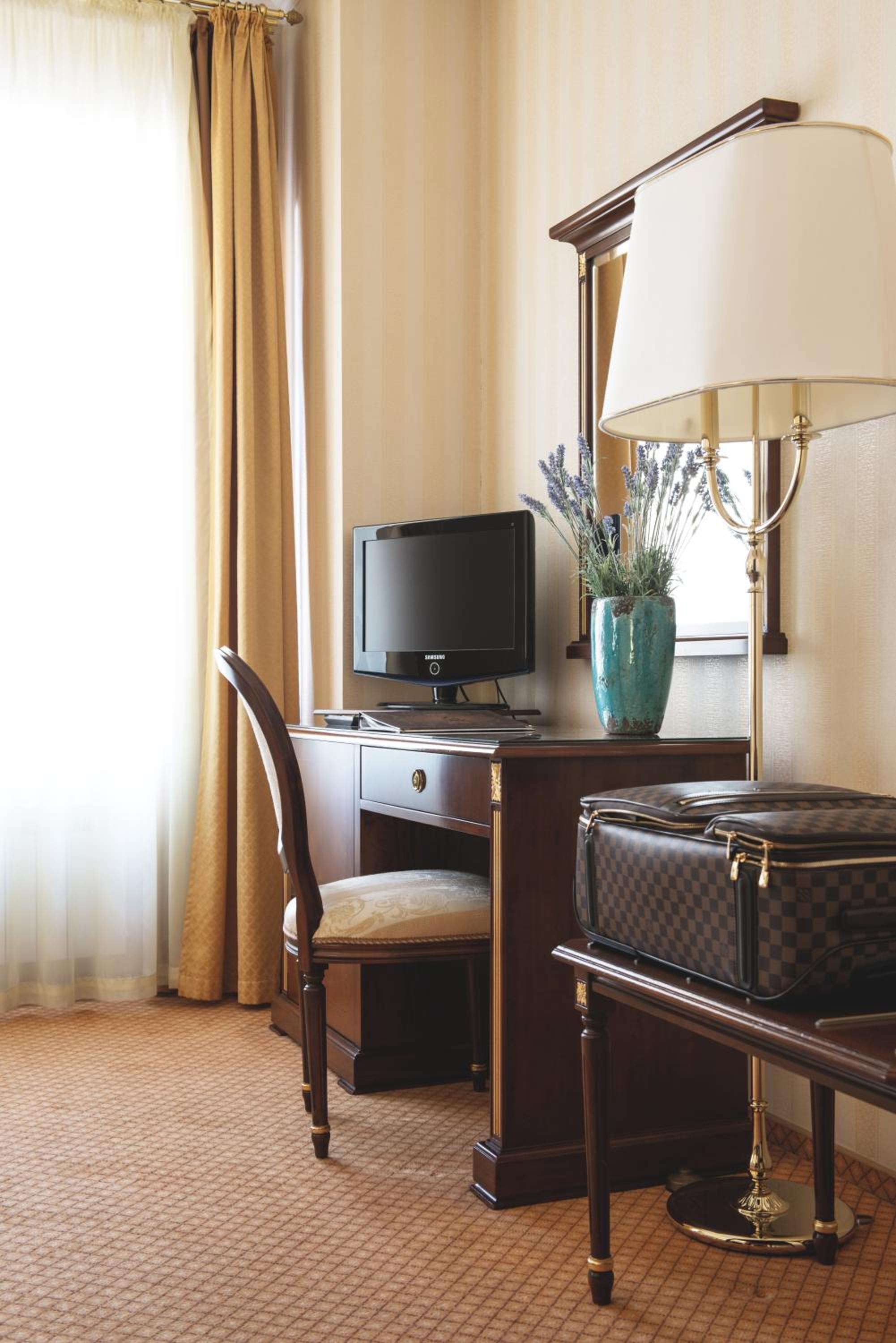Experience comfort in air-conditioned rooms adorned with warm colors and classic décor. Each room is equipped with a minibar, complimentary mineral water, a safe, and a private bathroom with a hairdryer.