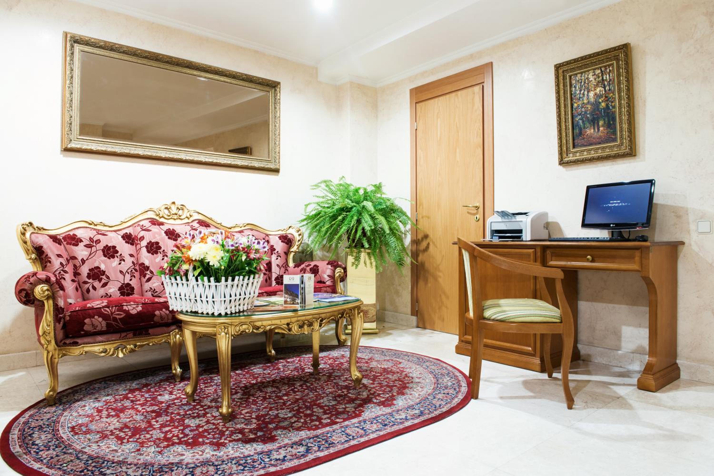 На ресепшн зустріли не привітно, без посмішки. На ресепшн чомусь була собака, яка лаяла гучно і налякала. Праска на поверсі була, але немає нічого поряд, щоб повісити свої речі, які вжде попрасовано. Праску забирала в номер. До того ж розетка, яка біля прасувальної дошки небезпечно зламана, з проводами назовні. І я боялася туди вставляти праску.