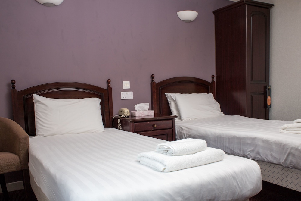 This hotel is old and worn. The carpets were threadbare (especially on the steps) and many upholstered chairs were so worn that tape was used to cover the holes. The view out the window was of a dilapidated property with piles of what appeared to be assorted collections of construction debris. The parking lot is far too dark and the provided garbage cans were overflowing with lots of trash on the ground. The door from the parking lot into the hotel would not close. The halls are only wide enough for a single person to pass through and lighting is sparse and quite dim (what respectable hotel at this price point has pull-chain light fixtures?!?). Our room had twin beds; one of the mattresses had multiple springs bulging through the top. The only positive things I can say about a hotel in this condition at this very expensive price point is the on-site pub and restaurant are convenient…otherwise this dump should be avoided.