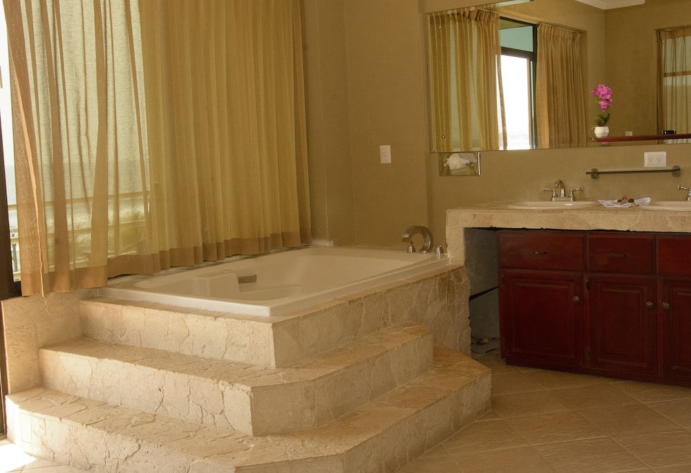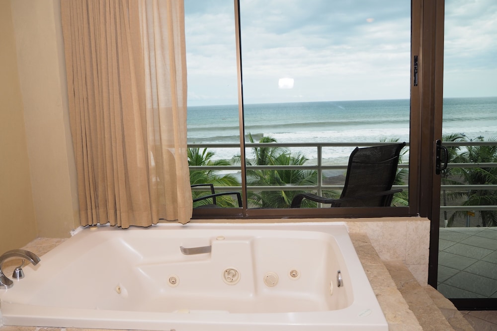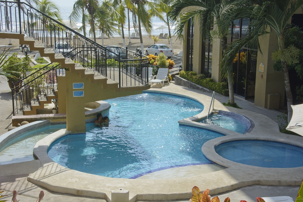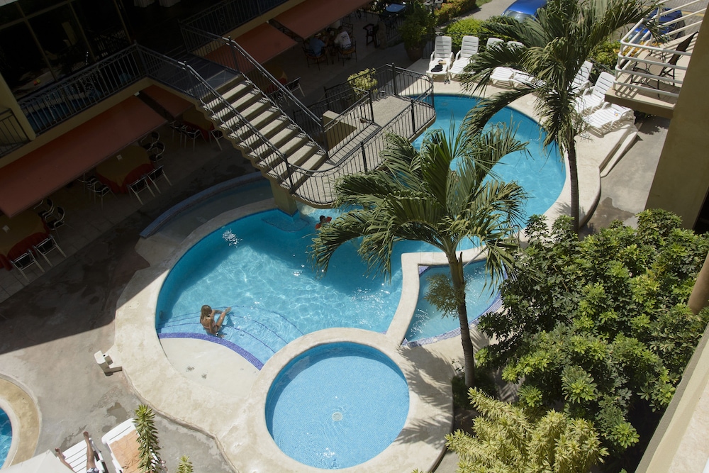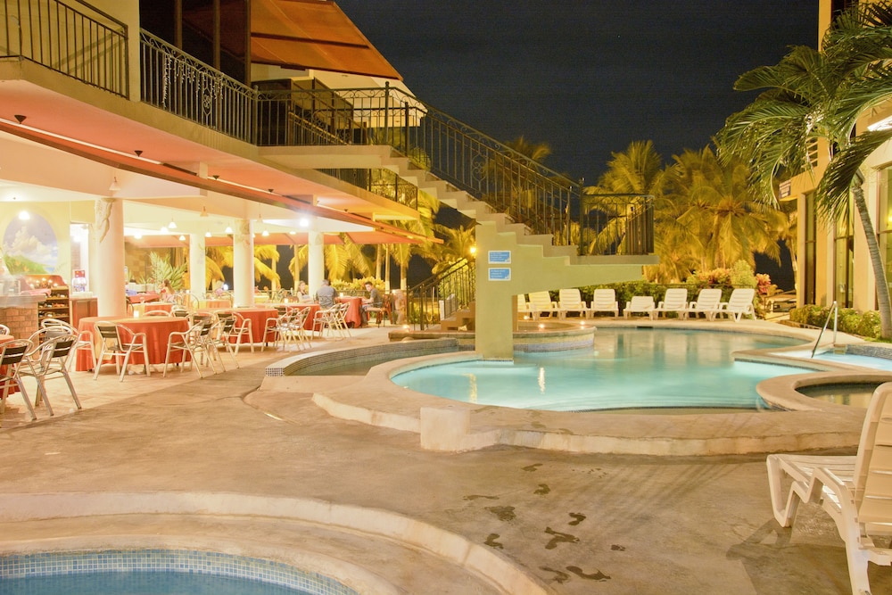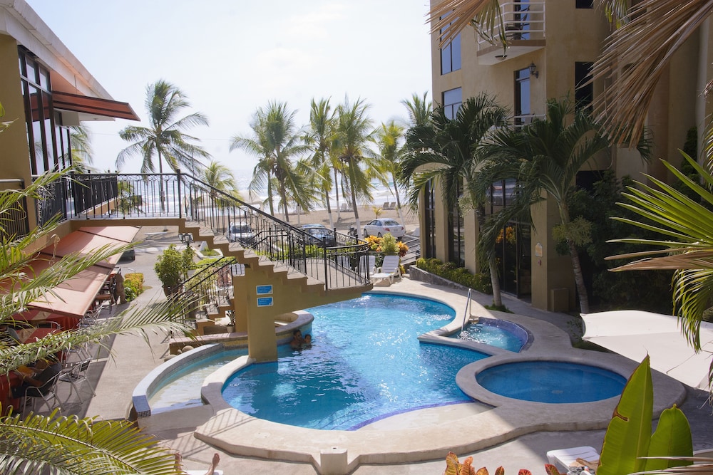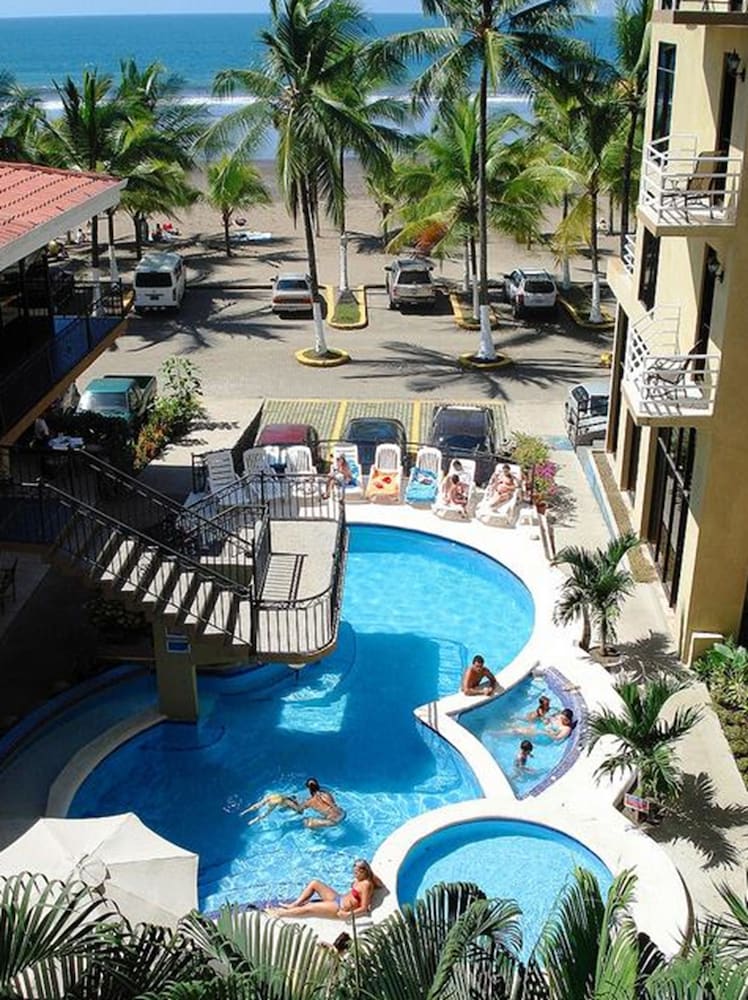 The hotel name was not accurate upon arrival, and the builiding was gray instead of orange in the photos, but this is a great place to stay in Jaco! Has 2 pools, but the hottubs are same temp as pools. On the beach.