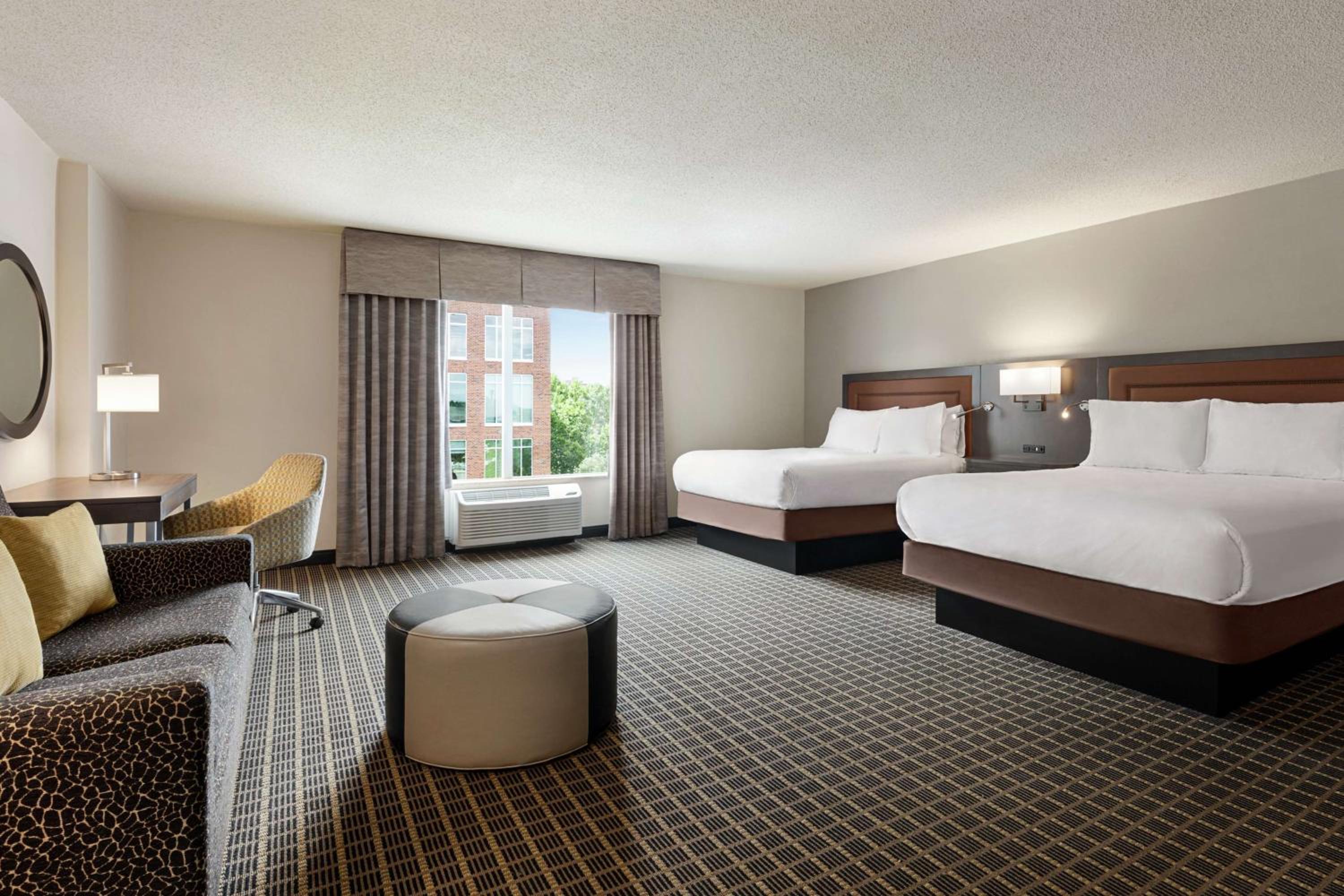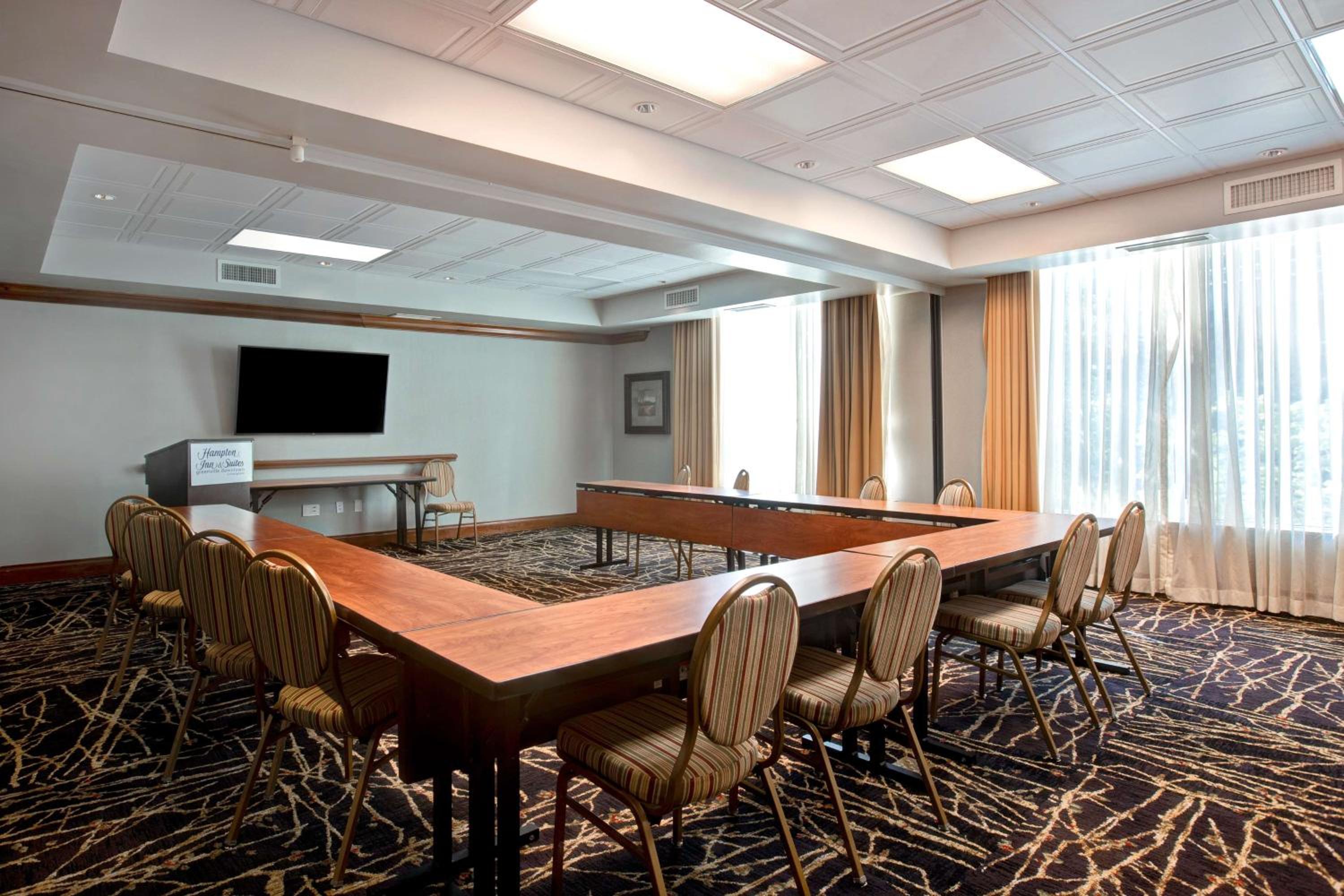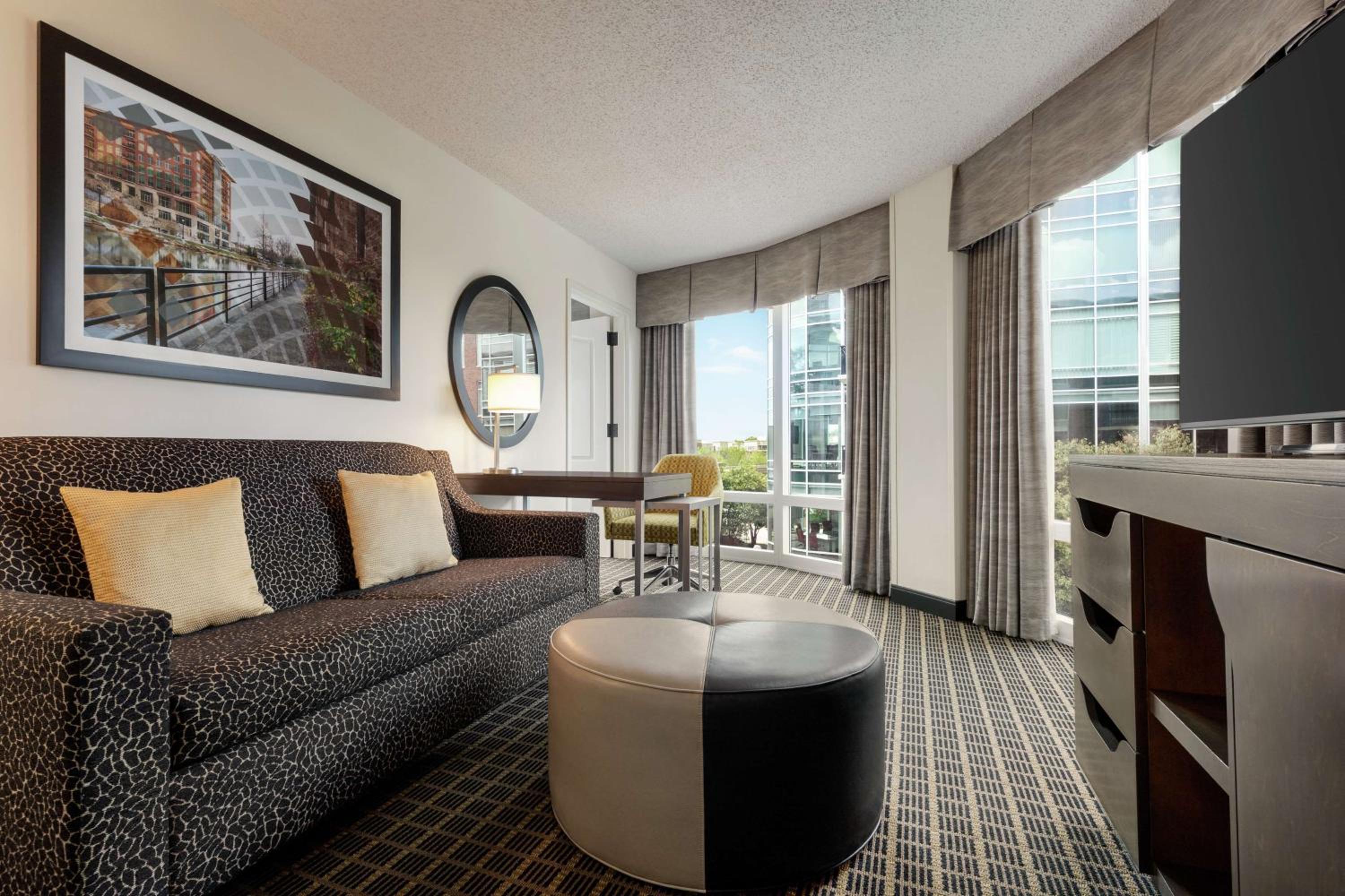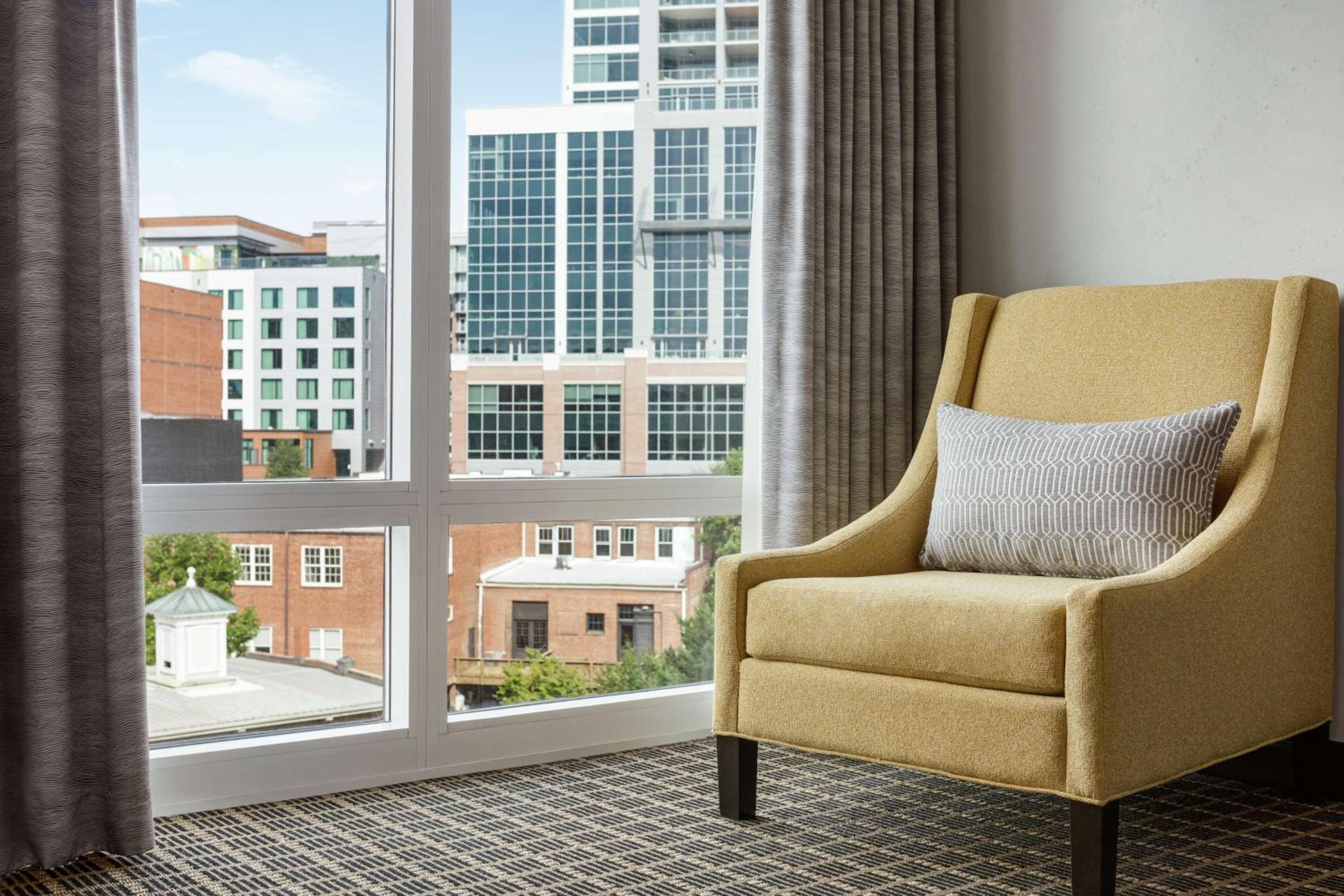 Experience comfort and convenience in the heart of downtown Greenville at the Hampton Inn & Suites Greenville-Downtown-Riverplace. Each room is equipped with modern amenities including a flat screen TV, refrigerator, microwave, and coffee maker. Upgrade to a room with a sofa bed and balcony for a stunning view of the Reedy River.