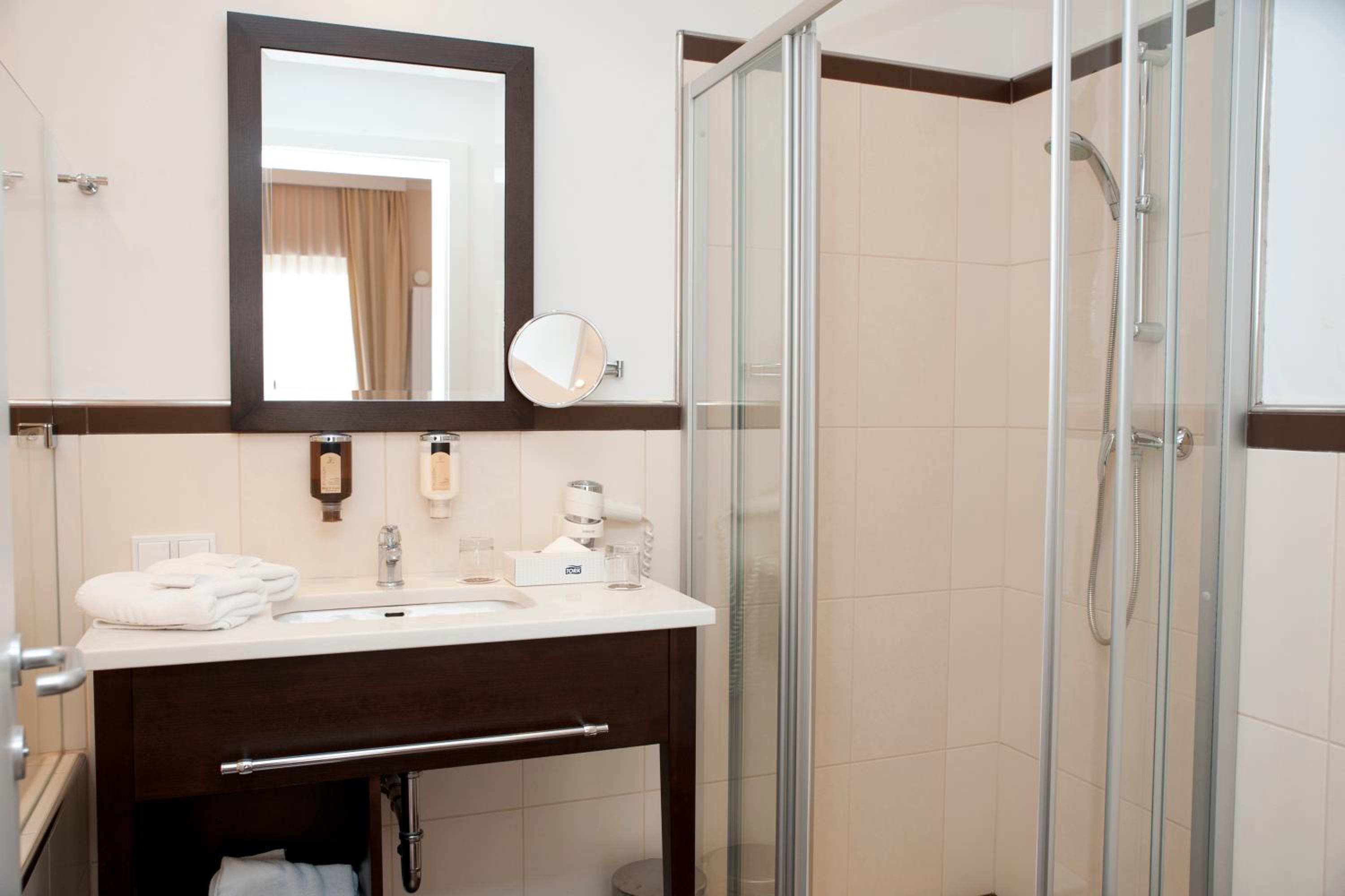 Modern Rooms and Amenities: Hotel Sandwirth offers modern rooms with air conditioning, minibar, and flat-screen TV. Enjoy free WiFi and access to the relaxation zone with sauna and gym equipment.
