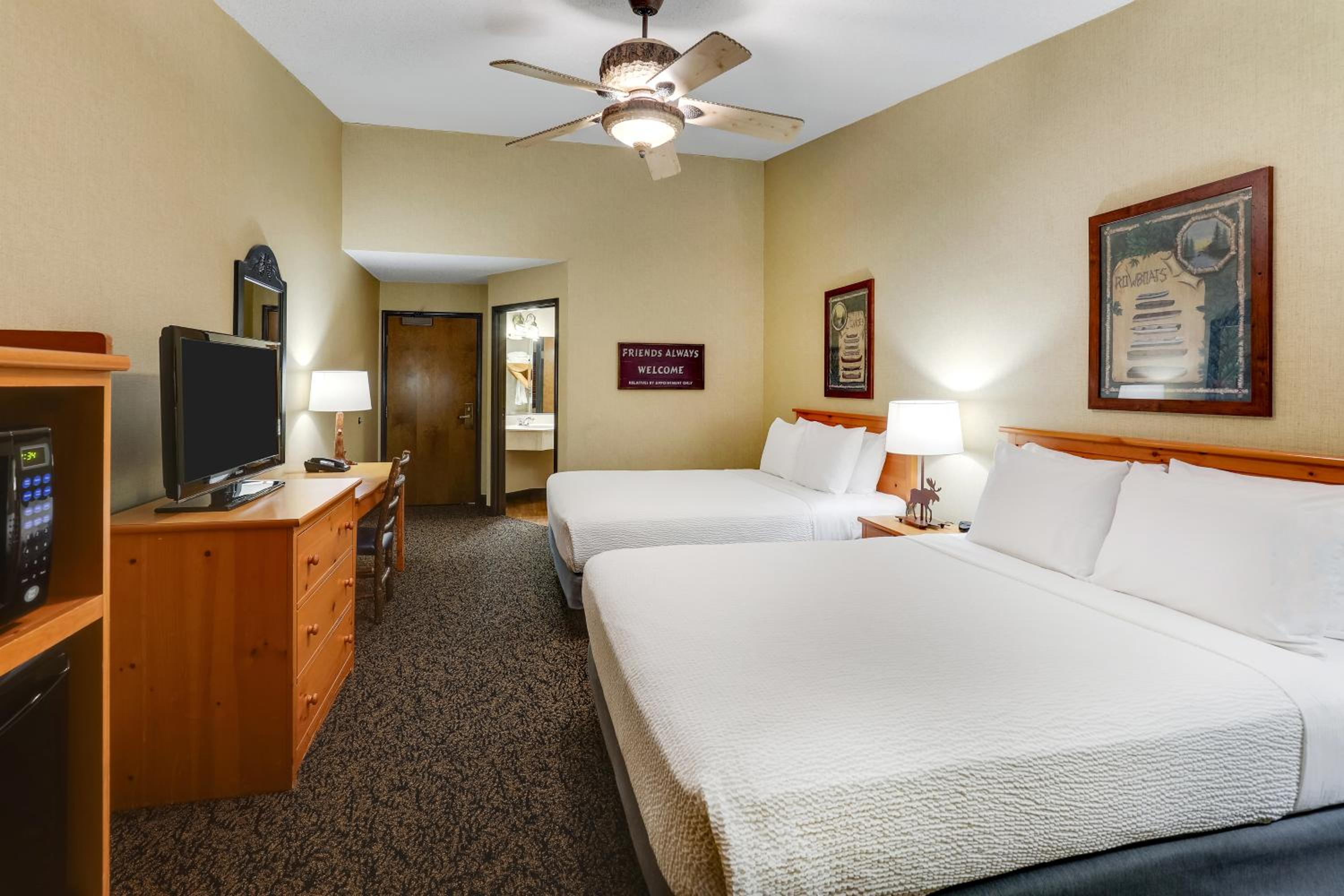 Savor American appetizers and cocktails at the on-site Blackwater Jack’s Saloon, or start your day with a delicious continental breakfast. Keep up with your fitness routine at the well-equipped gym, take a dip in the hot tub, or freshen up your wardrobe with the provided launderette facilities.