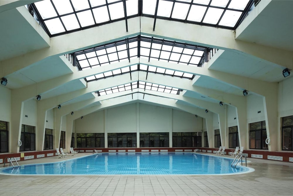 Unfortunately, I did not stay long enough to enjoy the hotel ammenities like the pool and garden, but the stay was very comfortable. The rooms are a bit dated, but the linens are clean and they spoke English. The big plus is the location right by the railway station and airport.