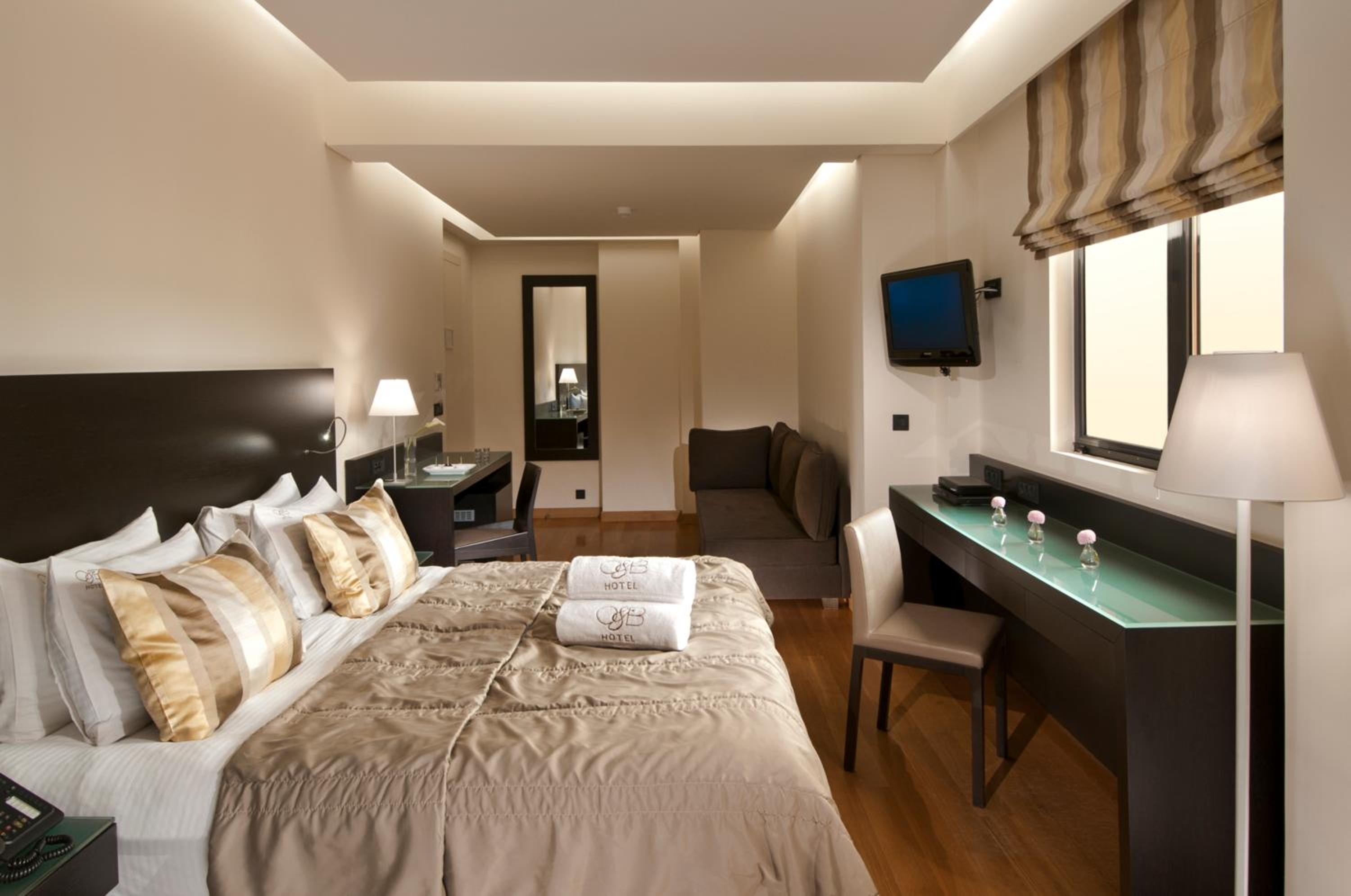 Experience the epitome of comfort and style at O&B Athens Boutique Hotel. Indulge in rooms featuring the latest in video and sound design, Egyptian cotton sheets, and marble bathrooms with custom-design glass-enclosed showers. Some rooms even offer stunning Acropolis views.