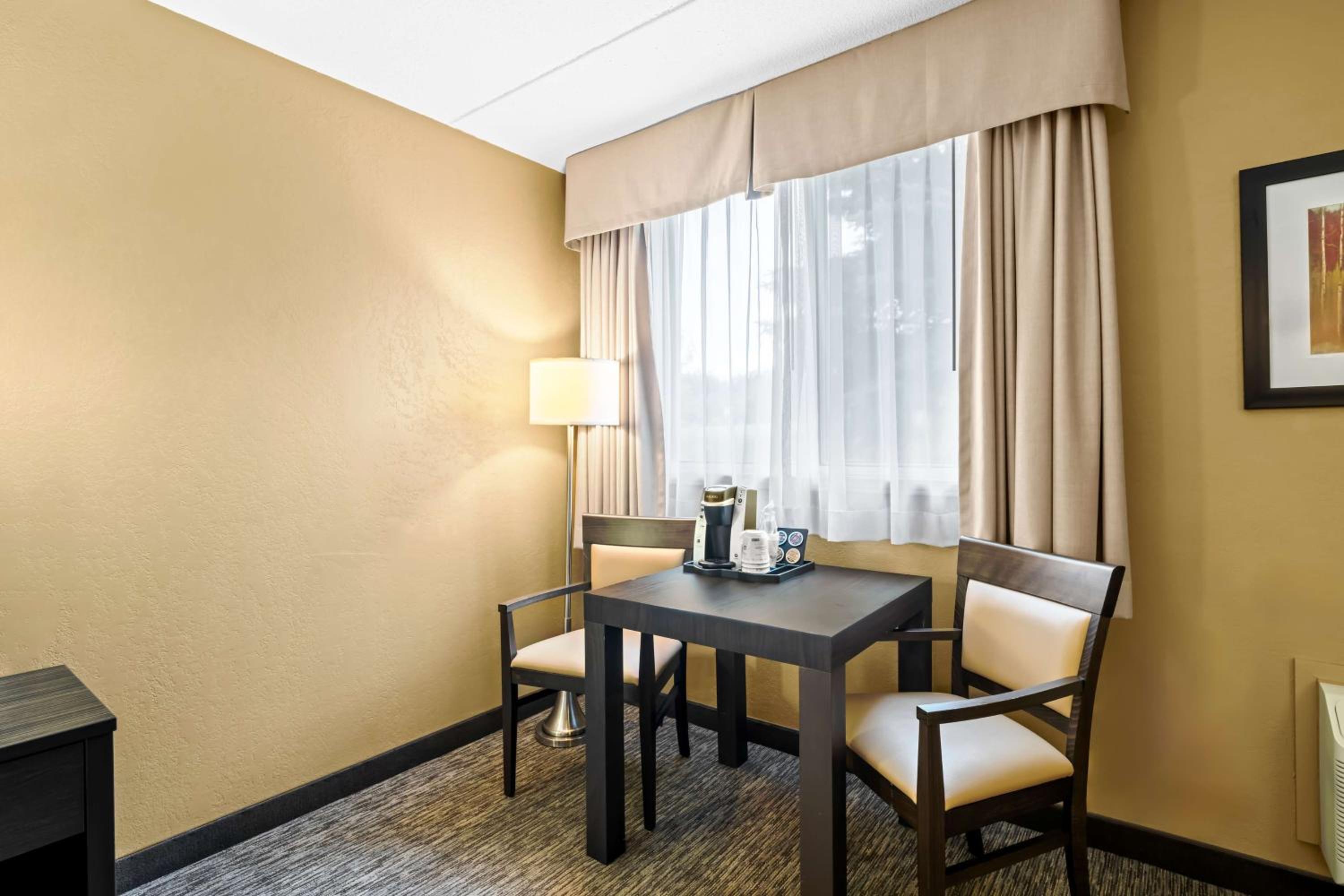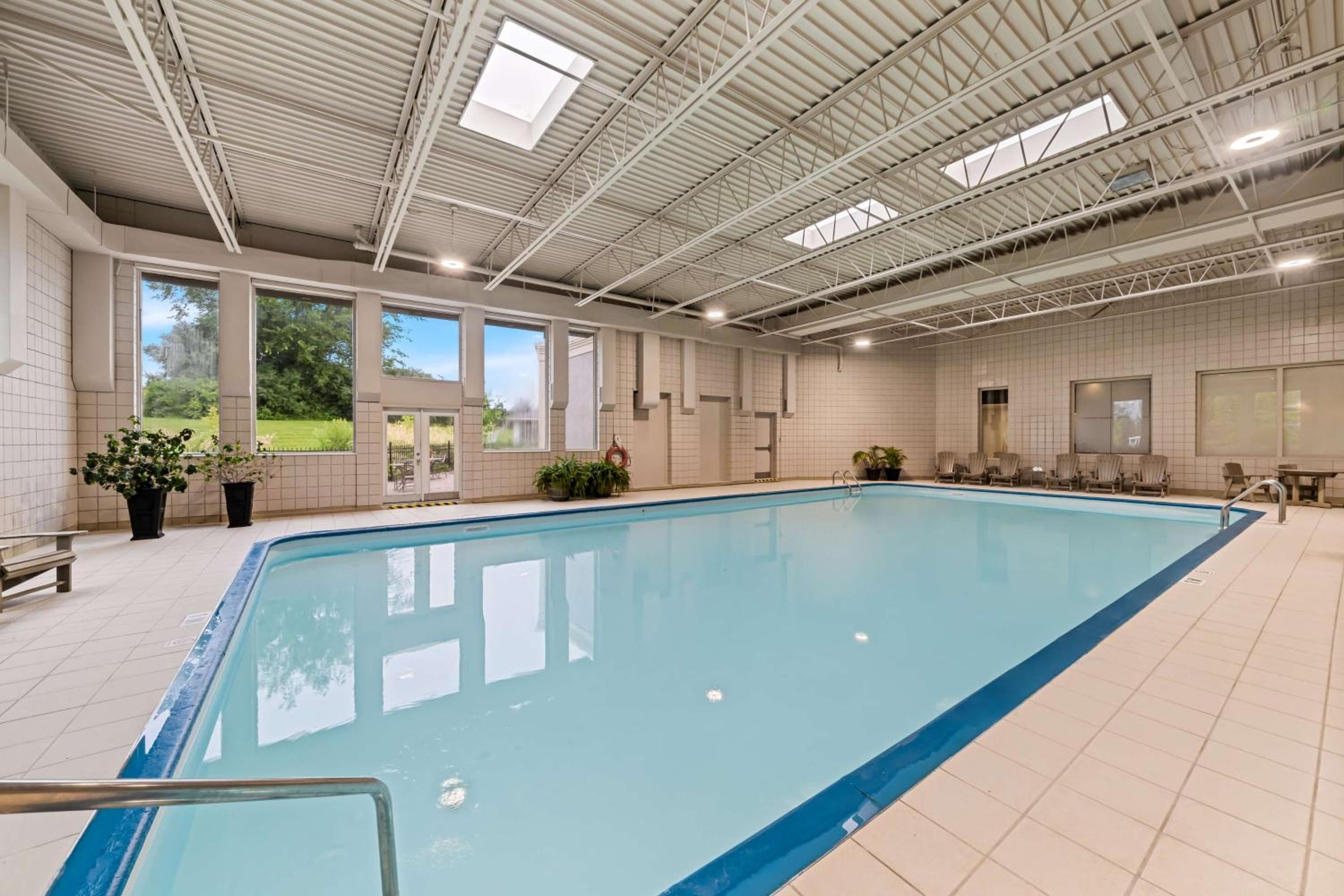 Relax and Unwind: Take a refreshing dip in the indoor pool, rejuvenate in the sauna and hot tub, or stay active at the hotel's gym.