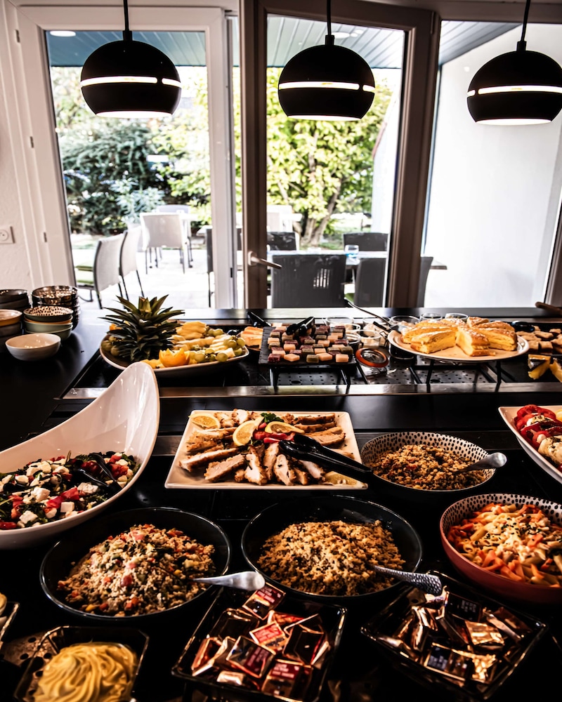 Indulge in a delicious meal at our on-site restaurant, featuring a buffet breakfast on weekends and weekdays, ensuring you start your day off right with a satisfying selection.