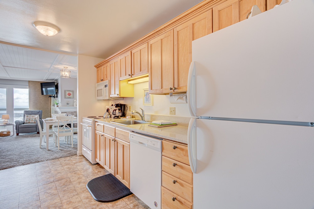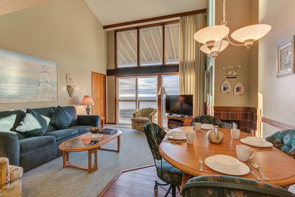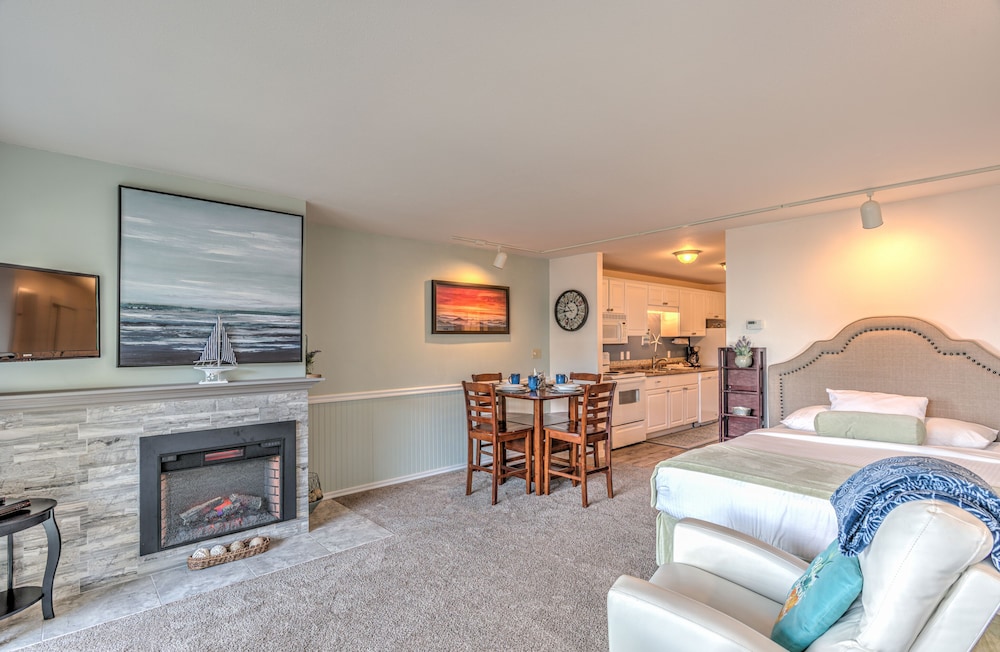 This is a very unique way to experience the Oregon coast in a relatively secluded setting as the lodge is located away from the hustle and bustle of the main strip but is less than three minutes away by car. Not having the ability to drive your car to the location where you're staying is a minor inconvenience but more than offset by the absence of car noise. A two minute walk separated us from our car. We had an ocean view room with a kitchen and the vistas were grand. While we visited our favorite Newport destinations, we really enjoyed lounging in the room reading, relaxing and watching sunsets while sipping our favorite beverage. The staff is punctual and personable and made us feel at home. We're very happy to have had the experience and look forward to future stays.