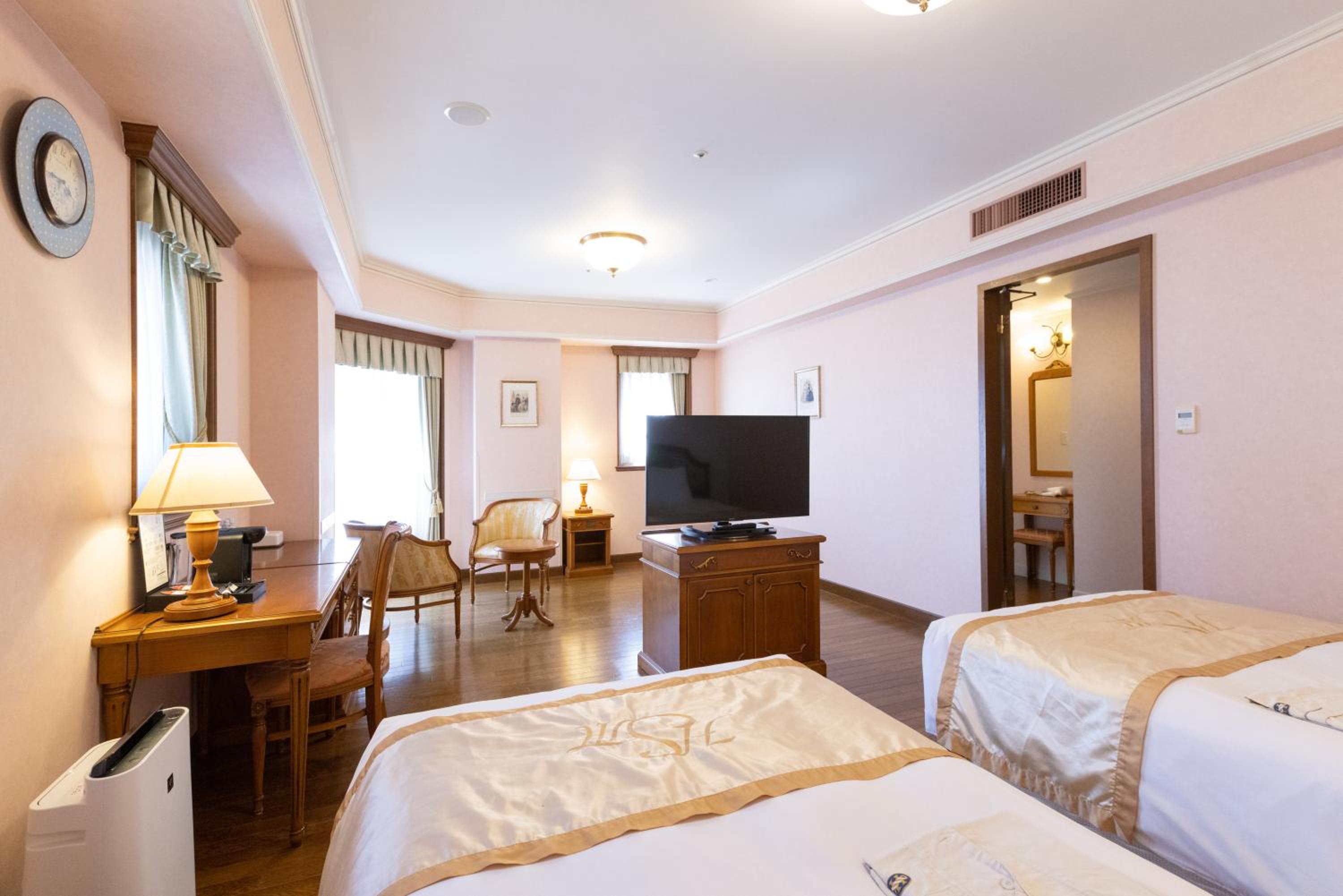Luxurious Accommodations: Hotel Monterey Sendai offers stylish guest rooms with classic European decor, antique furniture, and modern amenities like flat-screen TVs and minibars.