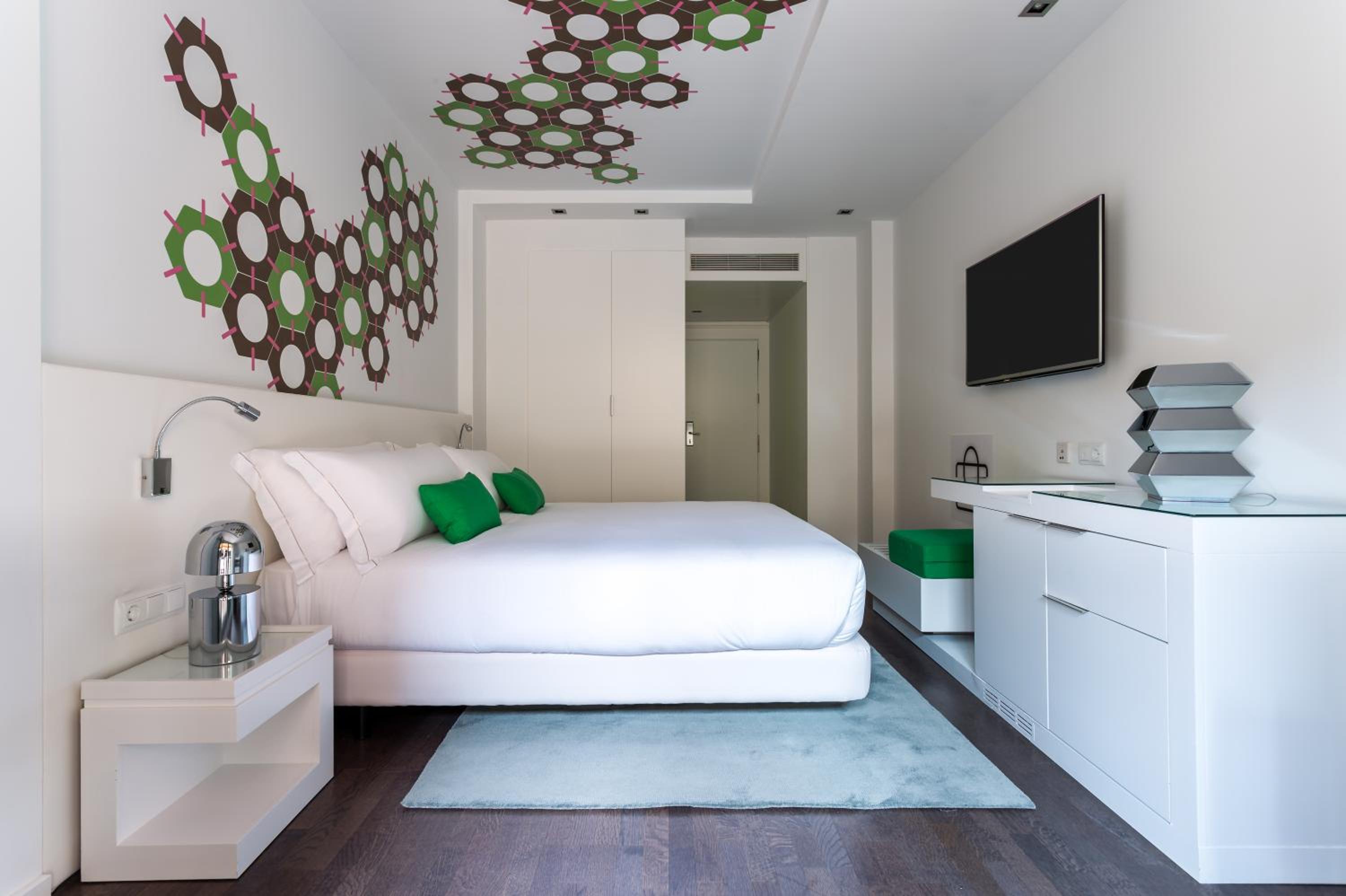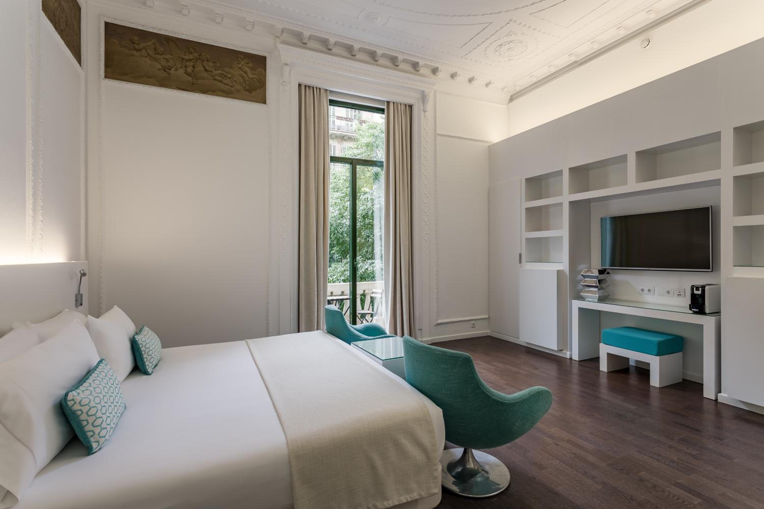 Experience the vibrant and stylish rooms at Room Mate Carla, just steps away from the iconic Passeig de Gràcia Boulevard and Gaudí’s La Pedrera. Each room is adorned with lively prints and equipped with modern amenities like a flat-screen TV and minibar.