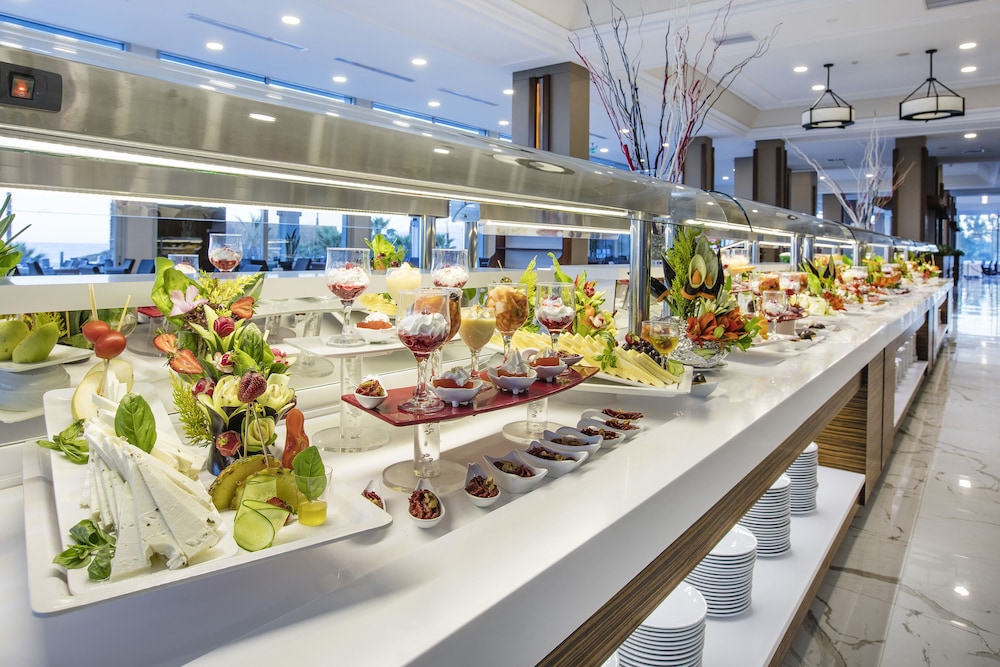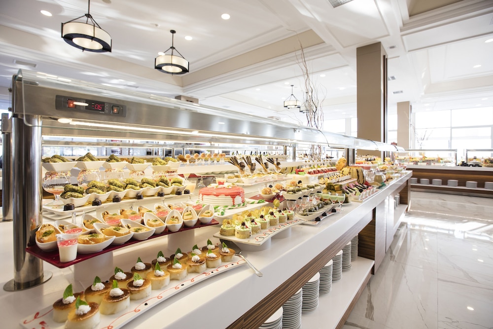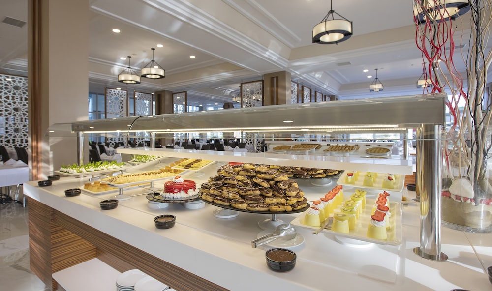 The main buffet restaurant exceeded our expectations. In our 11 years of travelling to Turkey, we have never encountered such an extensive salad and dessert section in an all-inclusive ultra hotel. The hot food options were consistently delicious and always served at the ideal temperature. Each night, specialty meat was featured, and the lamb legs beef and chicken were particularly noteworthy for their tenderness and mouthwatering Flavors. Also they has a seafood evening which was mouthwatering for you seafood lovers they had LARGE KING PRAWNS and SUSHI which was divine the spread was mind blowing to be fair if you guys like sushi, large king prawns with all the trimmings this is a must for you.