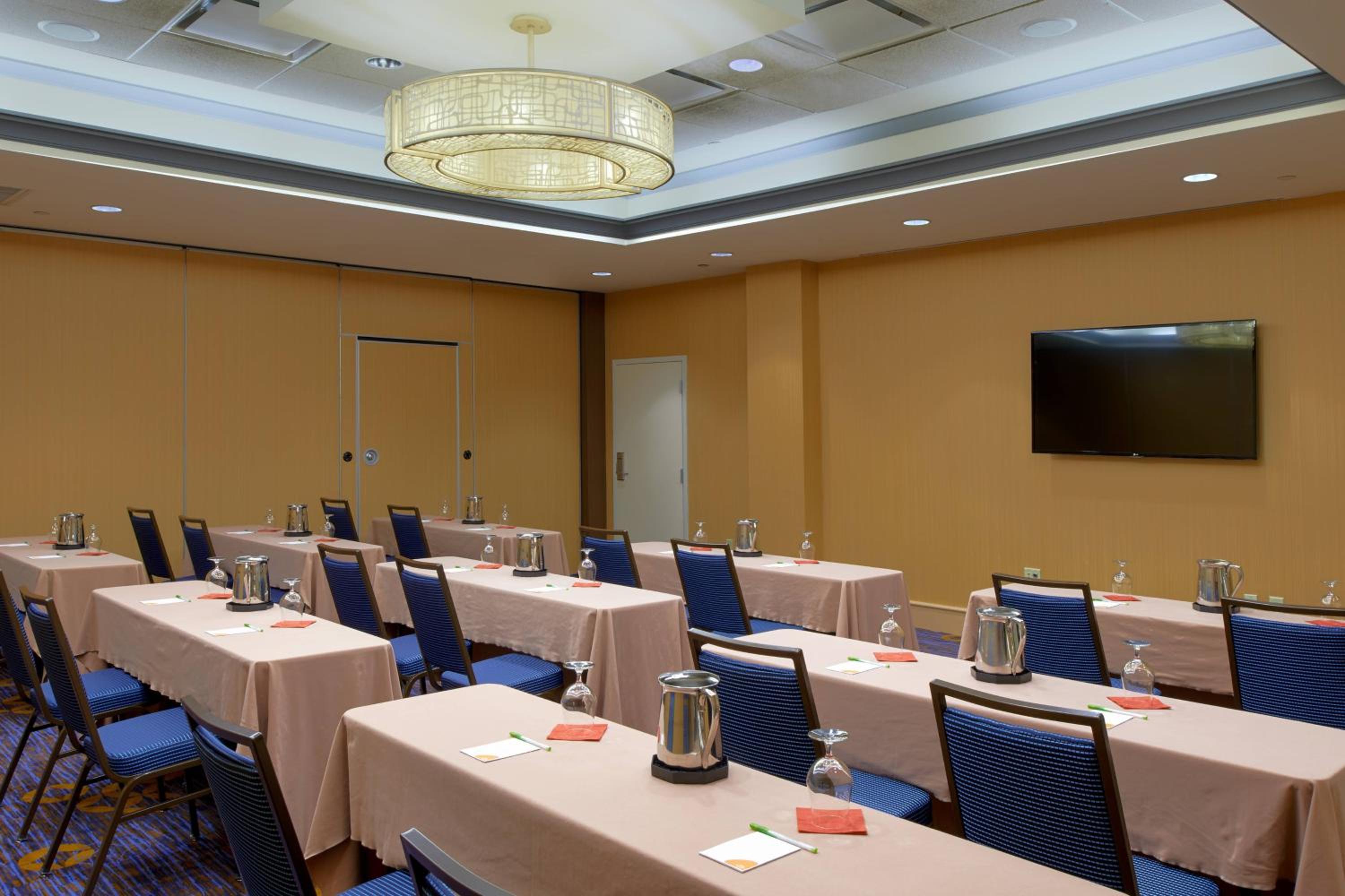 The room was huge, the parking was easy, the receptionists were both super helpful, the barista and bartender was friendly and helpful, and there was lots of space to sit and work or have coffee.
