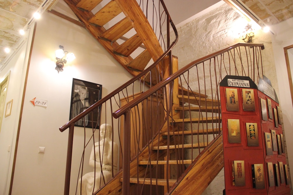 This is a fantastic hotel with loads of character. It has an old fashioned style but with modern comforts. It has a central location so you can walk everywhere. It is up 3 flights of stairs some of which are stone and worn. This adds to the character but wouldn’t suit someone with mobility difficulties. There are pictures on the bedroom doors with detail about the artist and the room where Rachmaninov stayed as a child has information about this. There’s an antique piano in the dining room which skilled guests are welcome to play. The staff are very friendly and helpful. On departure, a staff member took our cases right out to the street and waited till our taxi arrived .